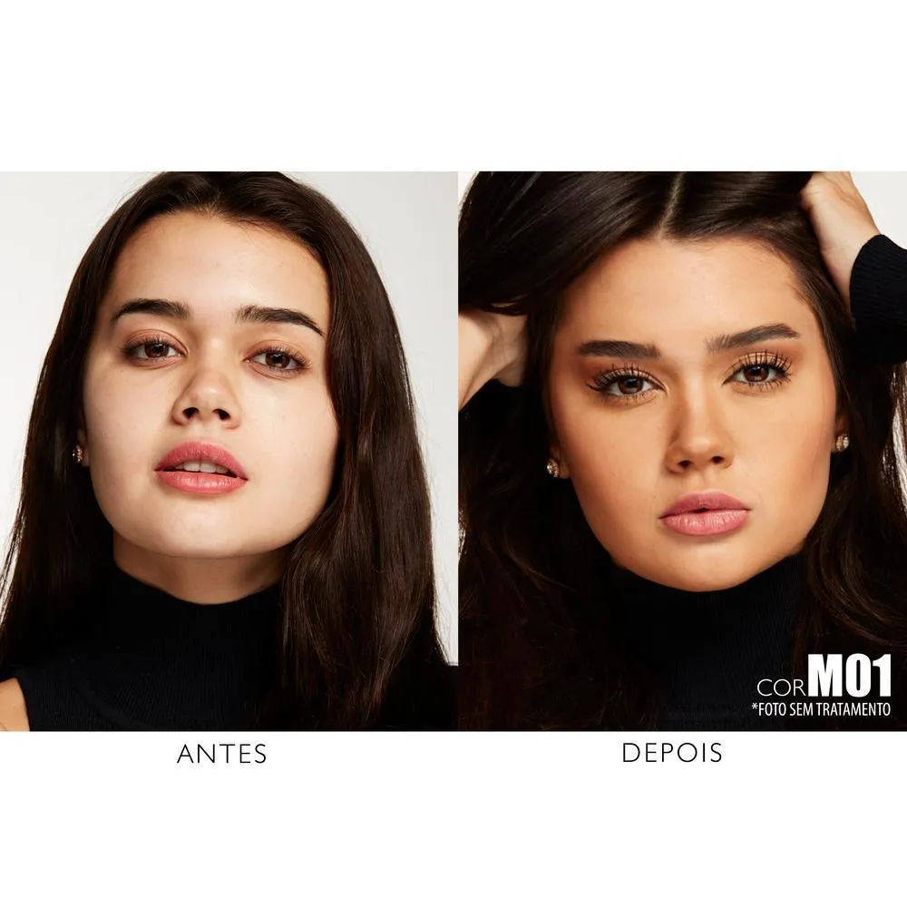 Pele Matte sem ressecamento. * SUGESTÕES DE USO: 1. Aplique uma pequena quantidade da base com o auxílio de um pincel, esponja ou com a pontas dos dedos;
