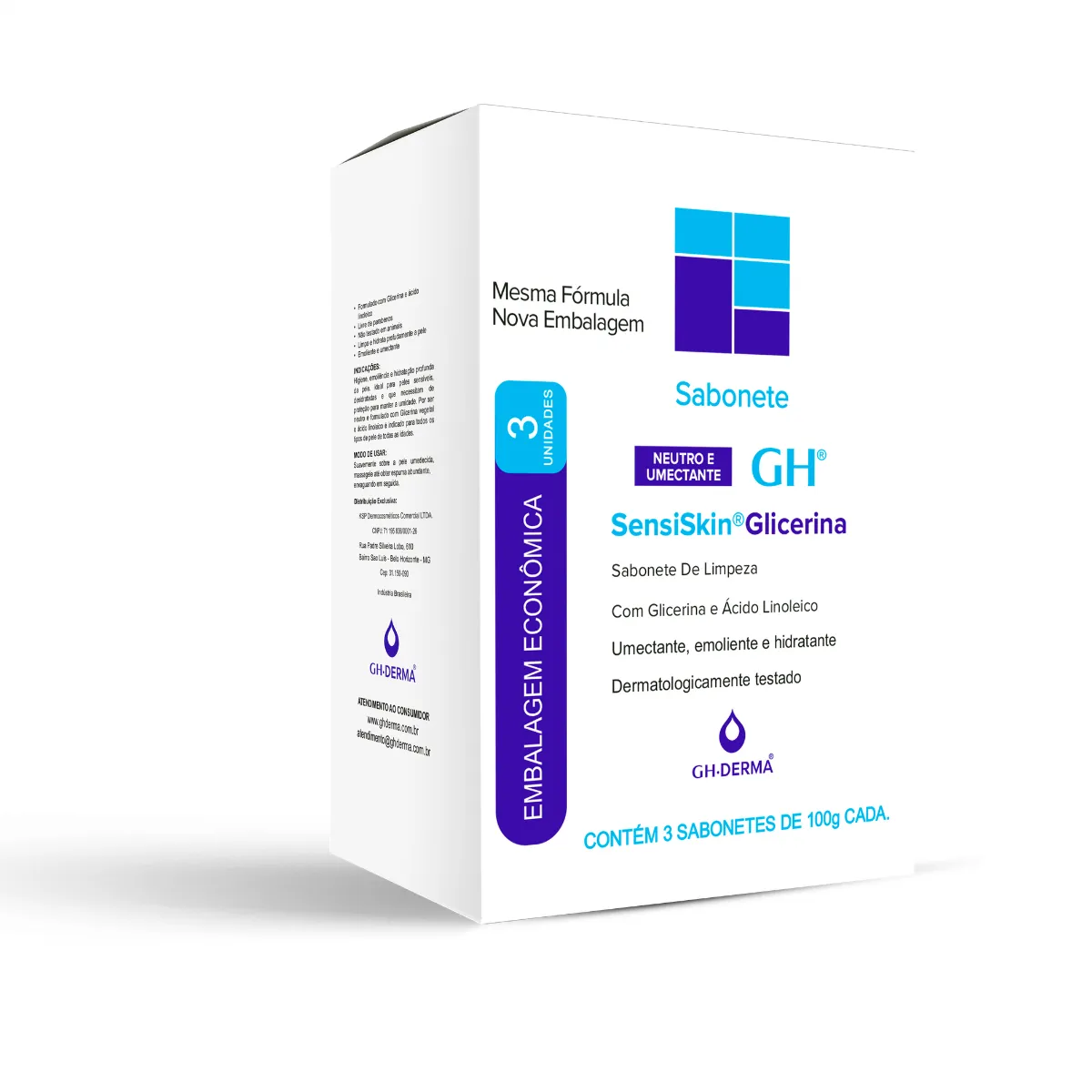 Sabonete em Barra GH Derma SensiSkin Glicerina Neutro e Umectante 3 unidades com 100g cada