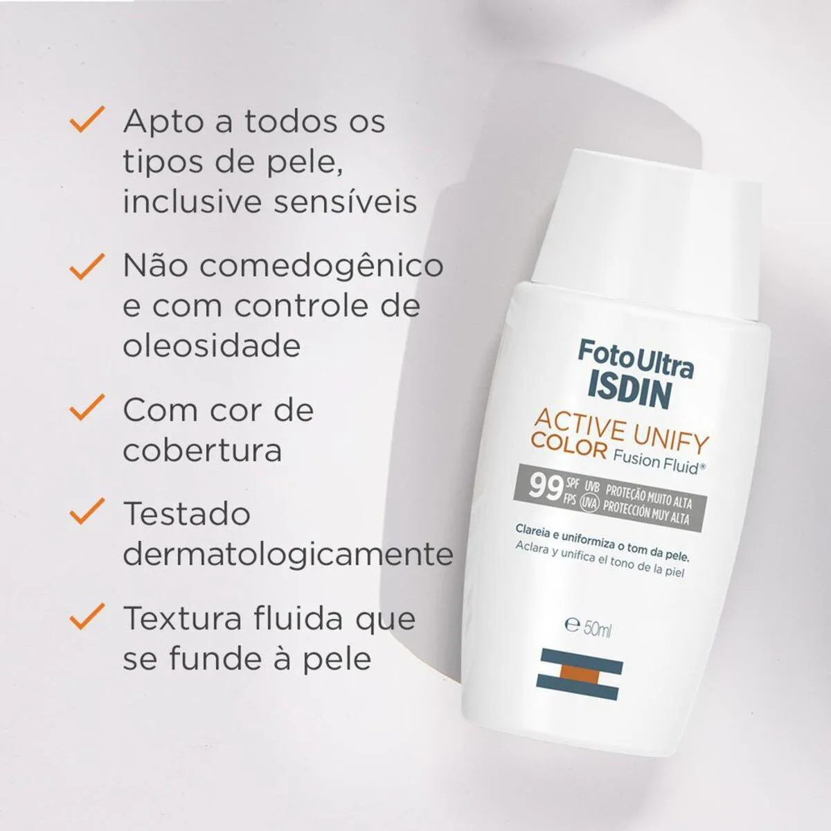 Clareador Facial Isdin FotoUltra Active Unify Fusion Fluid Color FPS 99 50ml