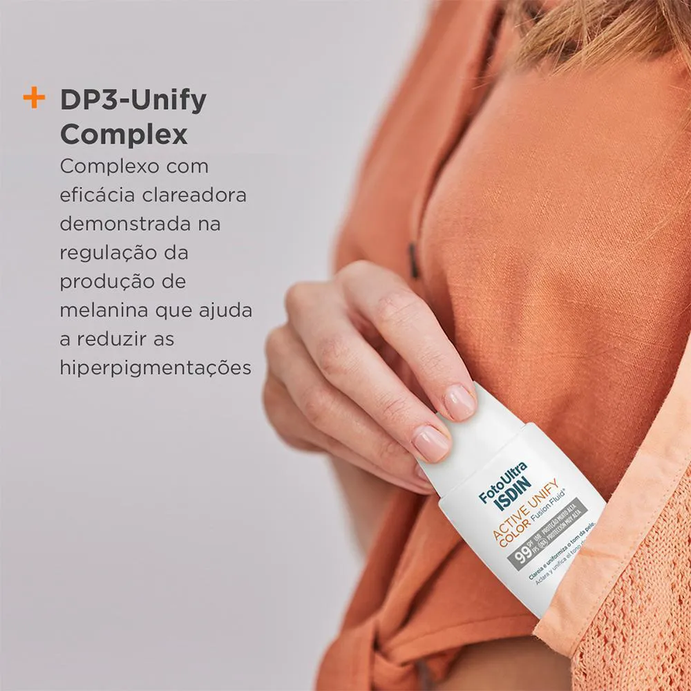O Clareador Facial Fotoultra Isdin Active Unify Color Fluído Protege Até Duas Vezes Mais Que Um Protetor Solar com Fps 50+ Contra Os Raios Uva. Possui Textura Fluida Que É Facilmente Absorvida Pela Pele. o Clareador Facial Isdin Active Unify Color Fluído Ajuda Clarear e Uniformizar o Tom de Pele e Regular a Produção de Melanina, Ajudando a Reduzir Gradualmente As Marcas Escurecidas da Pele Causadas Pelo Sol. * RESULTADO: