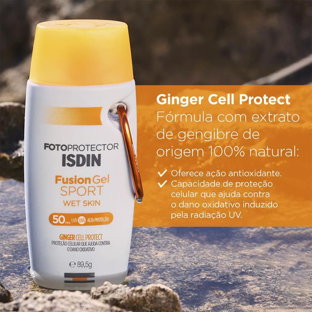 Protetor Solar Corporal Natural Isdin FotoProtetor Fusion Gel Sport FPS 50 protege e garante textura ultraleve invisível, sem deixar resíduo oleoso e sem deixar aspecto grudento. Totalmente eficaz na pele molhada, proporcionando efeito refrescante imediato. * RESULTADO: Protetor Solar * SUGESTÕES DE USO: 1.Aplique abundantemente meia hora antes da exposição ao sol sobre a pele molhada ou seca. 2.É necessária a reaplicação do produto a cada 2 horas e após sudorese intensa, nadar ou banhar-se, secar-se com toalha e durante a exposição ao sol. 3.Se a quantidade aplicada não for adequada, o nível de proteção será significativamente reduzido. 4.É necessária a reaplicação do produto para manter a sua efetividade. * OBSERVAÇÕES: Imagem Meramente Ilustrativa * ITENS INCLUSOS: 1 Isdin FotoProtetor Fusion Gel Sport Protetor Solar Corporal Natural FPS50 89,5g