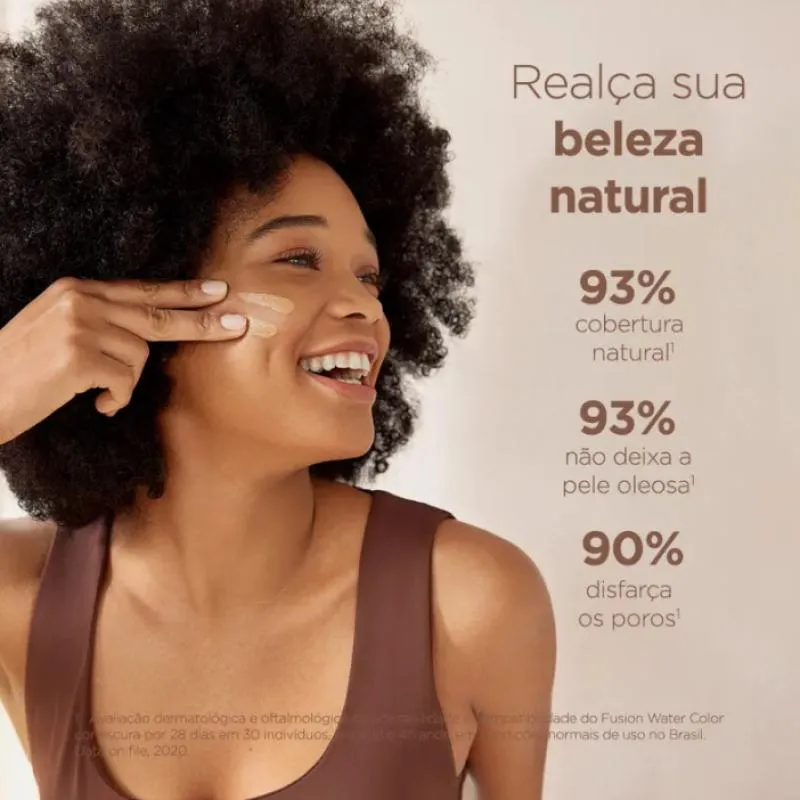 Protetor solar facial com cor e acabamento matte. ISDIN Fusion Water Color proporciona uma cobertura natural e ampla proteção à pele.