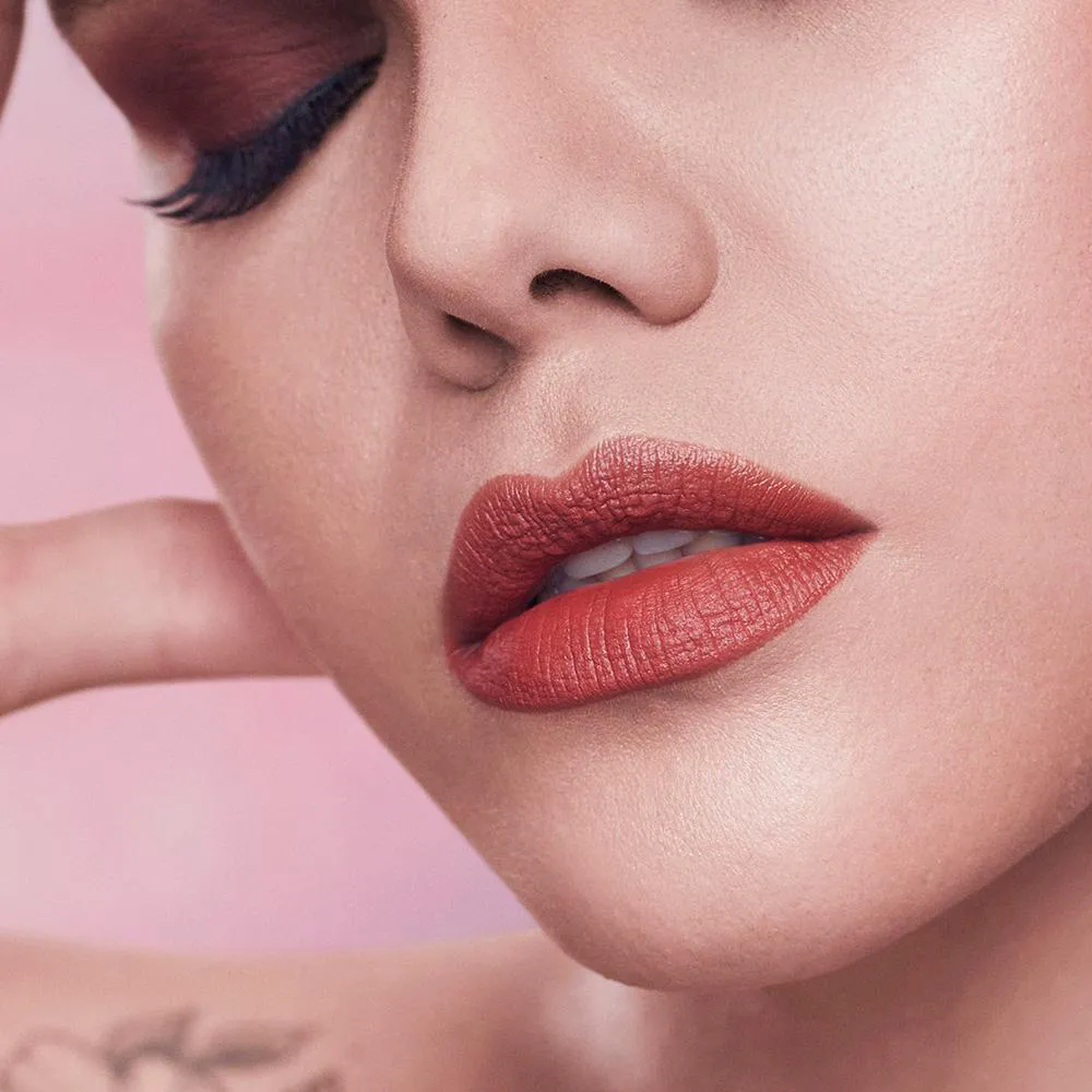 O Batom líquido By Karen Bachini apresenta uma fórmula inovadora com textura aveludada, que confere efeito mate e aplicação altamente confortável. Se espalha uniformemente e não marca as linhas dos Lábios, revelando cor intensa e efeito ultra-mate.