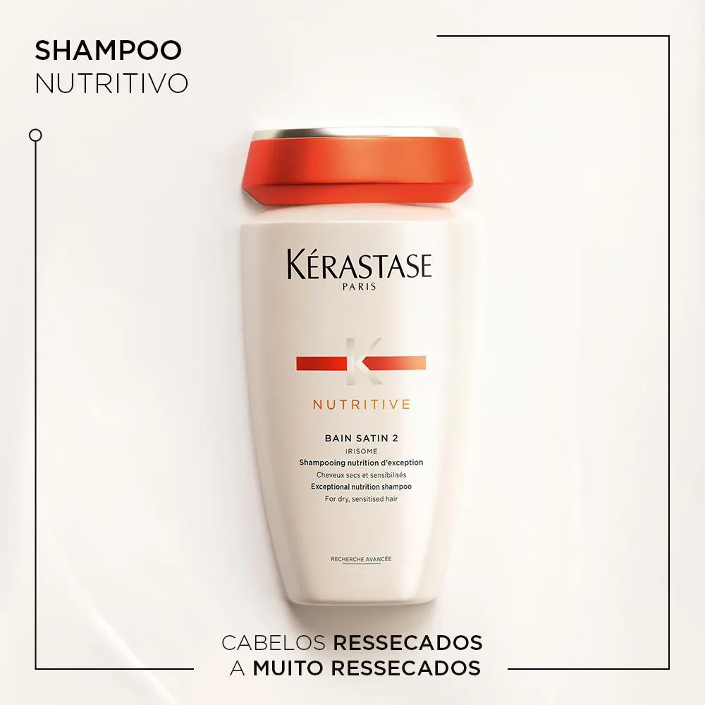 Recupere a saúde do Cabelo ressecado com o Shampoo hidratante Bain Satin 2, de Kérastase. Como parte do tratamento de hidratação profunda para fios sensibilizados, ele supre as necessidades da fibra capilar, limpa delicadamente o couro cabeludo, facilita o desembaraço, proporciona acabamento sedoso e mantém o cabelo saudável por muito mais tempo. Sua ação nutritiva de longa duração protege o cabelo de novos danos enquanto atua no interior da fibra capilar para fortalecer os fios desde a raiz. * RESULTADO: NutriçãoHidratação * SUGESTÕES DE USO: