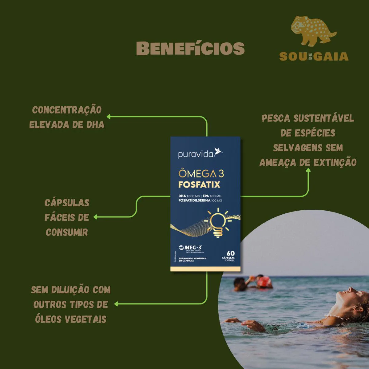 Formulado com tecnologia avançada e matéria-prima de procedência rastreável, possui selo de qualidade MEG-3®, que reconhece o fornecimento sustentável de ômega 3 e a ausência de metais pesados, potenciais neurotóxicos e outras impurezas em sua composição.