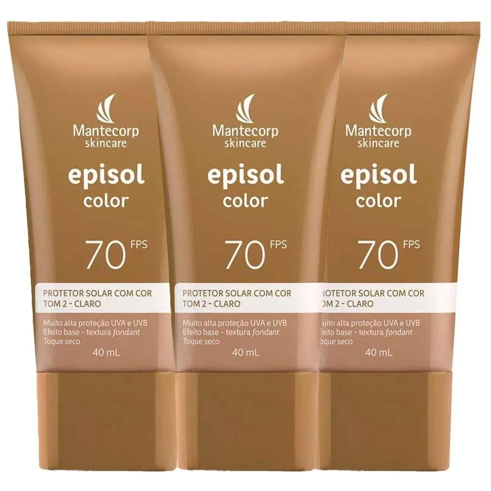 3 Protetor Solar Episol Color Tom 2 - Claro Fps 70 Com 40ml