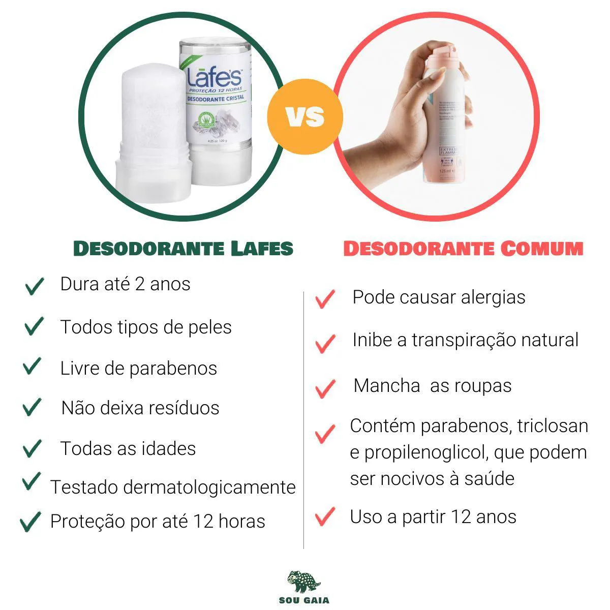 O Desodorante Natural Cristal Rock Lafes é um desodorante em forma de cristal, translúcido, cristalino, inodoro e incolor, produzido com sais minerais naturais que eliminam as bactérias causadoras de odor e mantém sua proteção desodorante por 24horas. Hipoalergênico, suave e eficaz, não mancha roupas nem deixa resíduos.