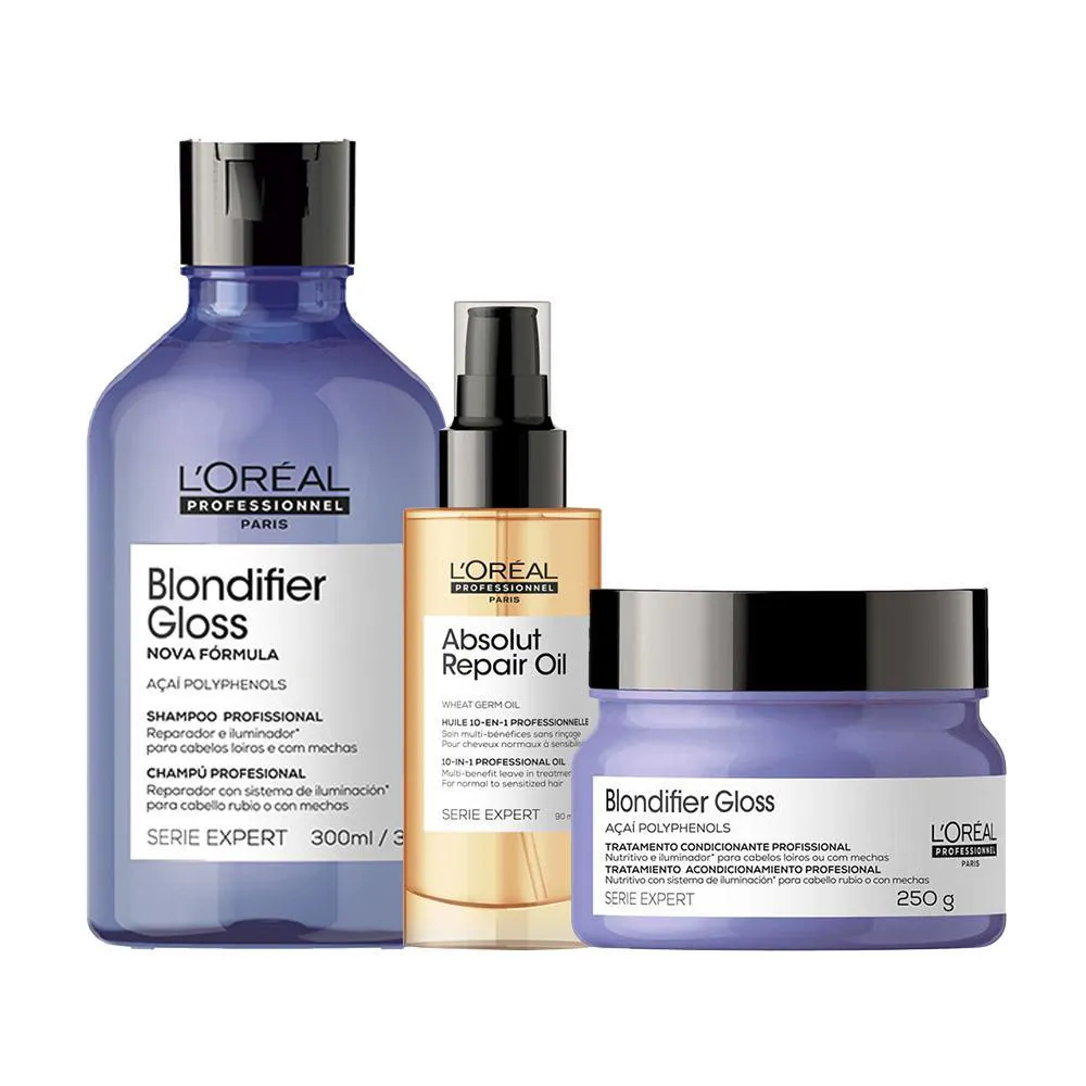 KIT L'ORéAL PROFESSIONNEL SERIE EXPERT BLONDIFIER GLOSS SHAMPOO E MáSCARA E ÓLEO