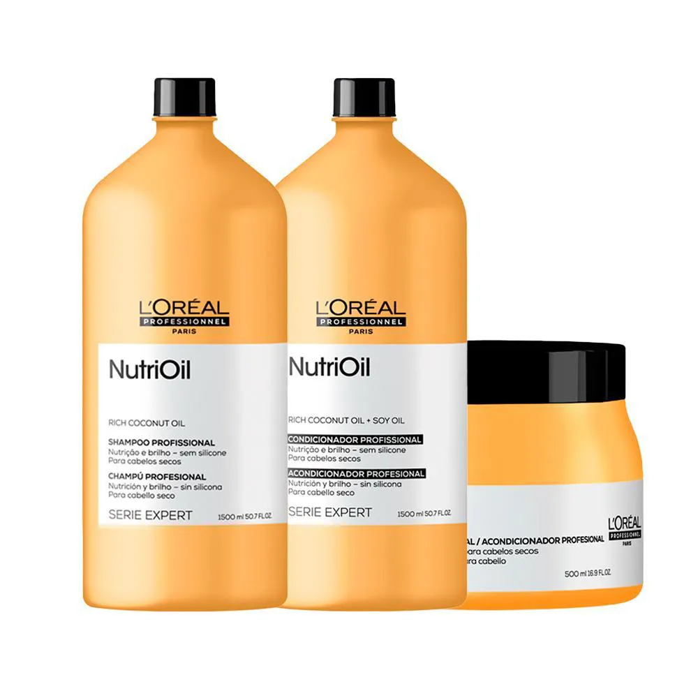Kit L'Oréal Professionnel Serie Expert NutriOil foi feito para proporcionar cabelos mais macios e brilhantes, sua tecnologia proporciona resistência ao fio e protege o filme hidrolipídico. Além disso, seus principais ingredientes promovem nutrição, força, redução do frizz e da perda proteica. * RESULTADO: Brilho; Nutrição. * SUGESTÕES DE USO: Shampoo
