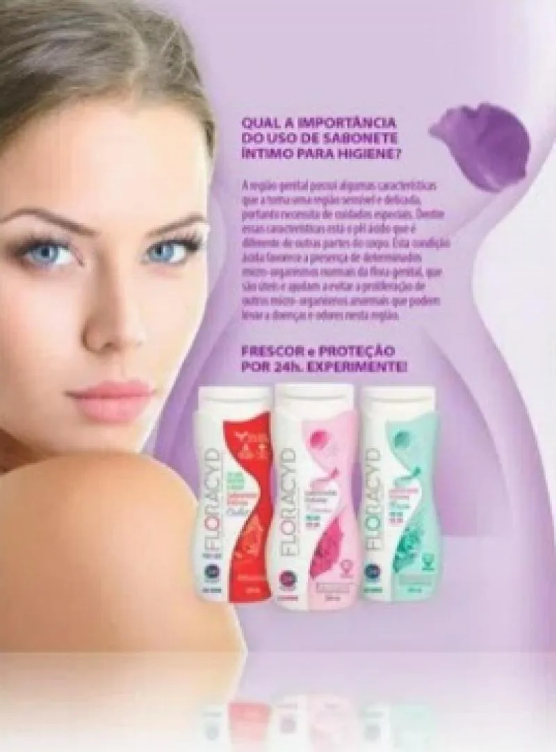 FLORACYD muito mais que limpeza, SAÚDE na hora do seu banho. FLORACYD mantem o equilíbrio da flora genital, com as tecnologias PREBIO, que equilibra e fortalece o balanço microbiano da região íntima da mulher, formando uma barreira protetora para instalação de micro-organismos patogênicos, e a PROBIO estimulando a ecoflora genital e normalização do PH vaginal.