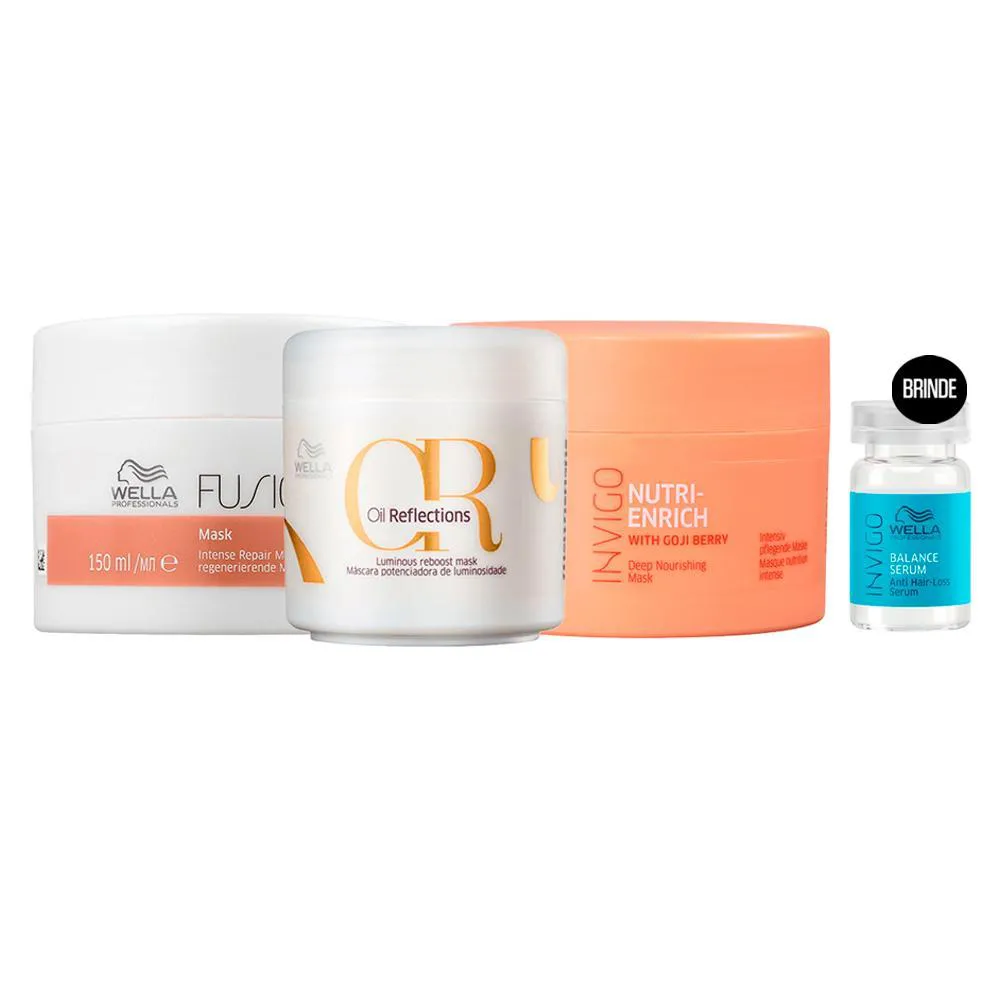 KIT WELLA PROFESSIONALS CRONOGRAMA CAPILAR - 3 MáSCARAS + BRINDE AMPOLA 6ML