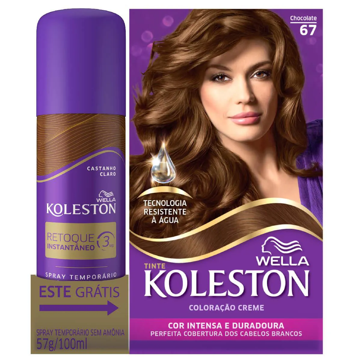 Kit Wella Koleston Tintura Chocolate 67 + Retoque Instantâneo Spray Castanho Claro