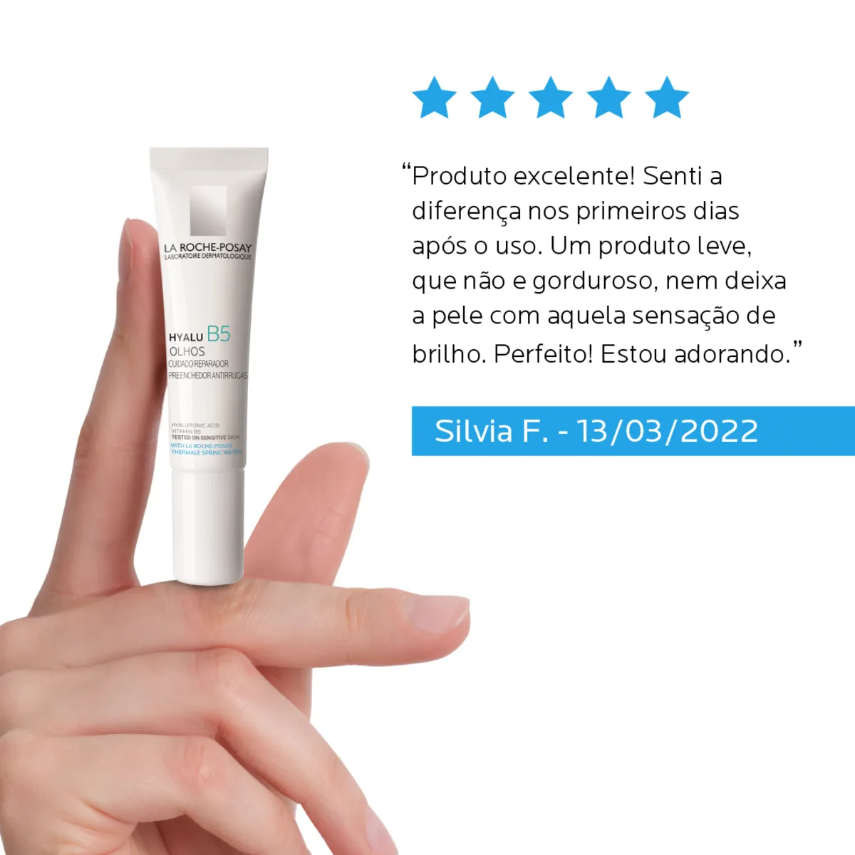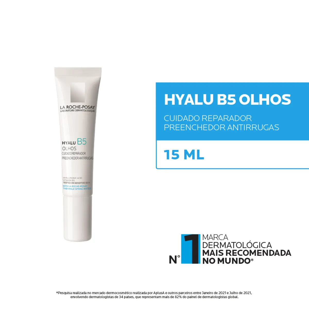 Sua fórmula apresenta eficácia anti-idade e conta com dois tipos de Ácidos Hialurónicos e Vitamina B5, que trabalham para preencher e reparar a barreira cutânea do contorno dos olhos. Além disso, o produto é sem perfume, hipoalergênico, oftalmologicamente testado e pode ser usado até em peles sensíveis.