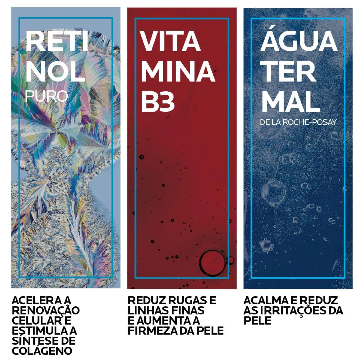 - Possui complexo retinol + ácido hialurônico + vitamina B3 + água termal de La Roche-Posay.