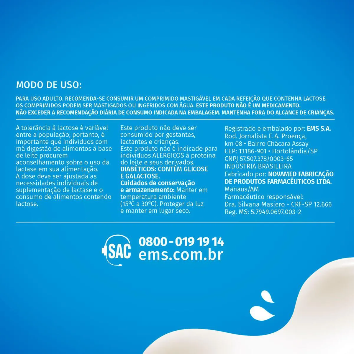 • É importante que indivíduos com má digestão de alimentos à base de leite procurem aconselhamento sobre o uso da lactase.