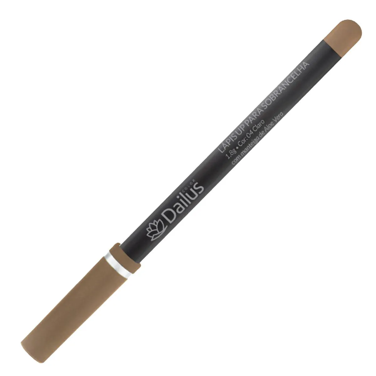 Lápis UP para Sobrancelha Dailus Claro possui em sua fórmula a Manteiga de Aloe Vera, que proporciona ao lápis uma textura cremosa e de fácil aplicação.