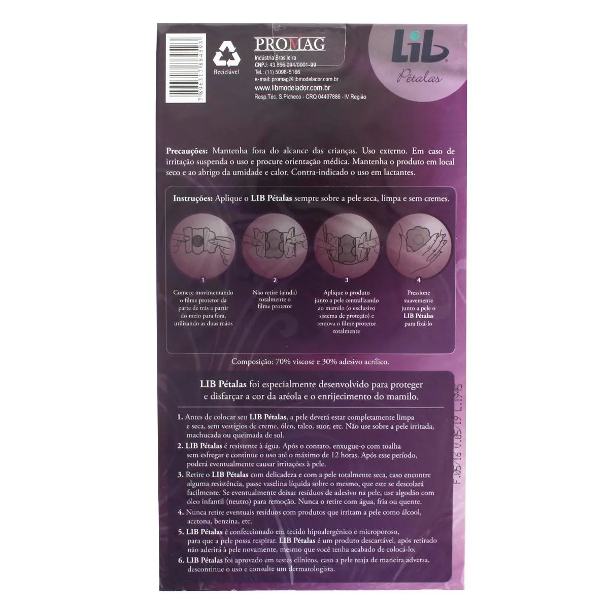 O Lib Pétalas é um protetor de seios autoadesivo, microporoso e hipoalergênico, desenvolvido especialmente para proteger e disfarçar a cor das aréolas e o enrijecimento dos mamilos.