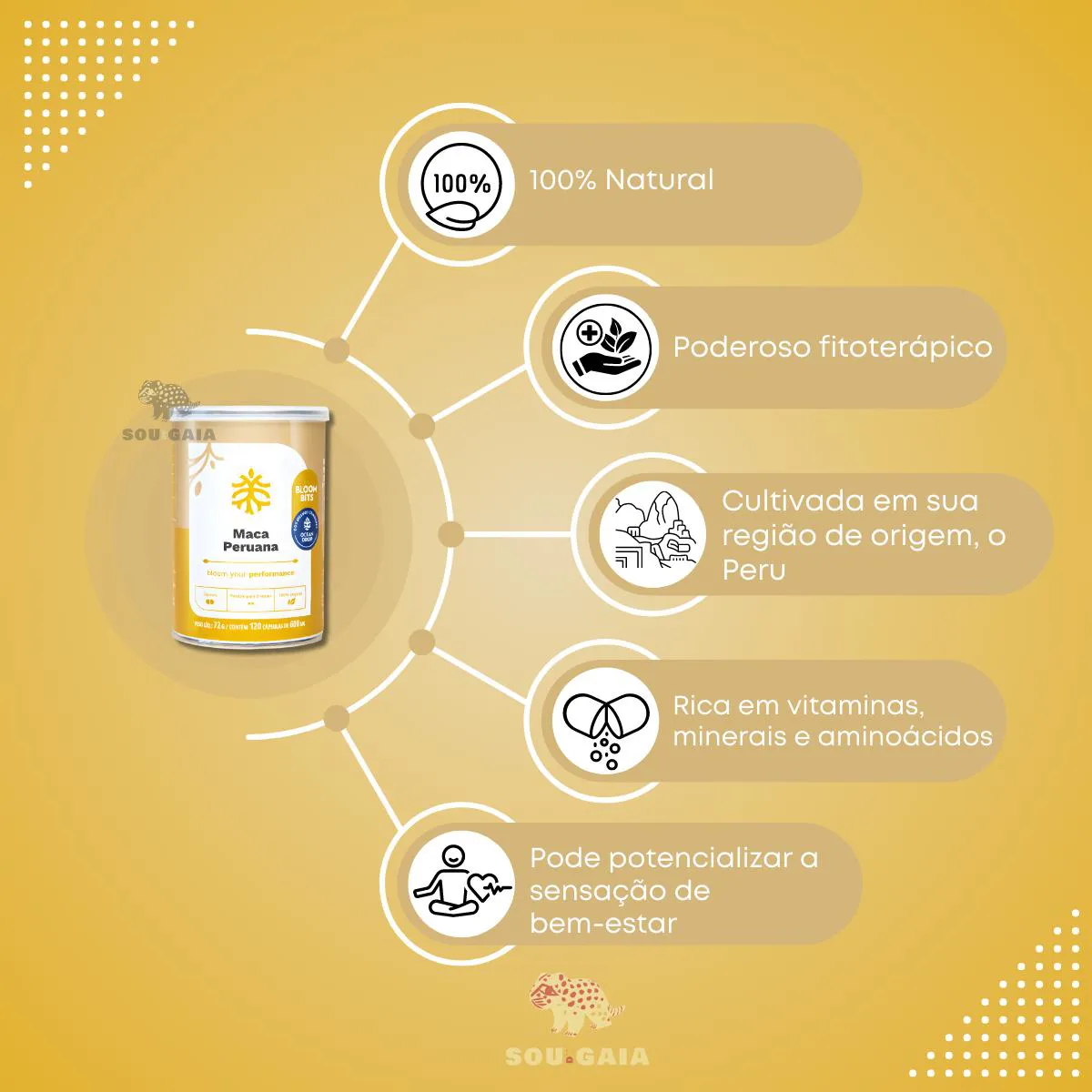 Originária da Cordilheira dos Andes e crescendo entre 4.000 e 4.500 metros de altitude, a Maca Peruana é uma raiz conhecida por sua riqueza nutricional. Seu uso fitoterápico é aproveitado por homens e mulheres em busca de benefícios para a saúde e vitalidade.