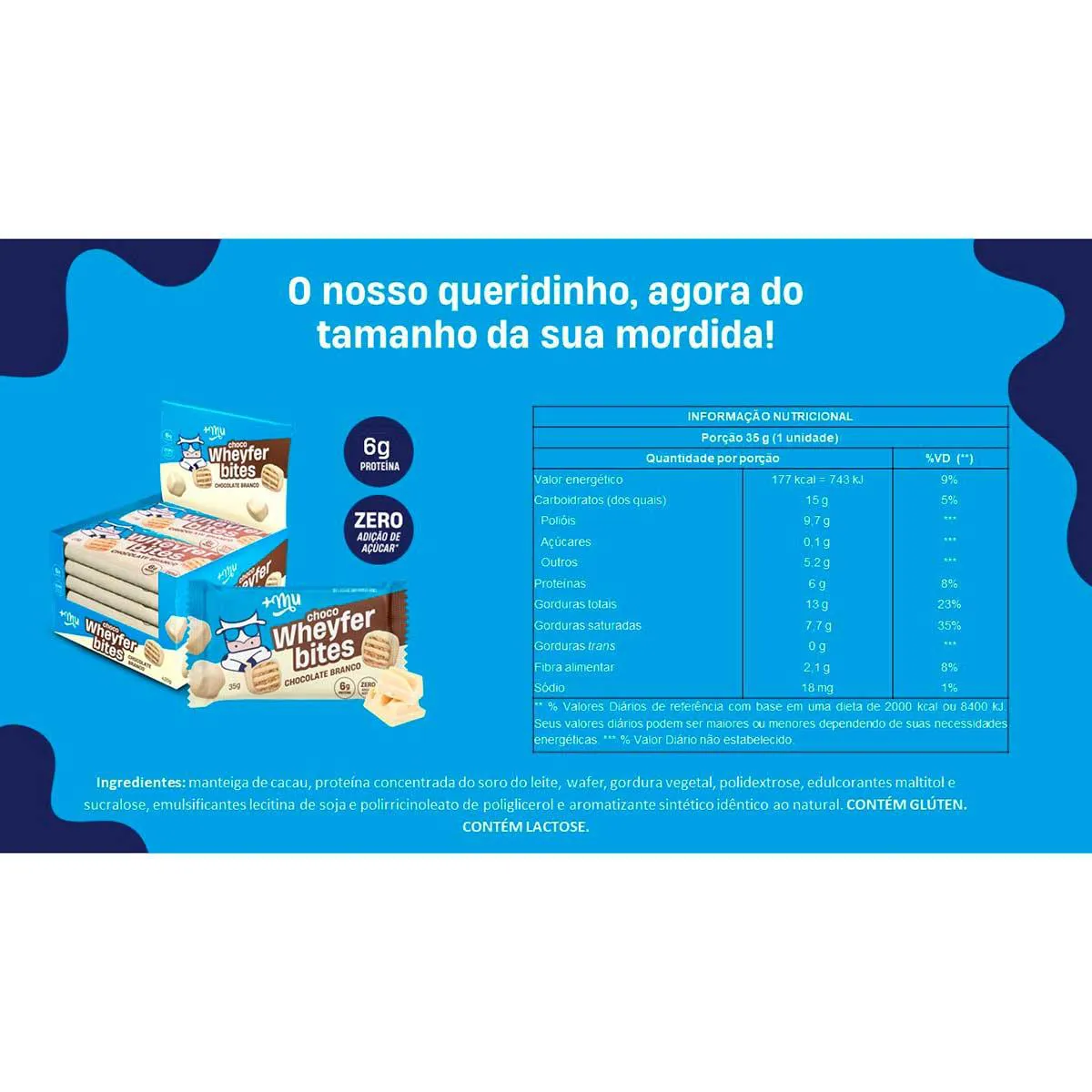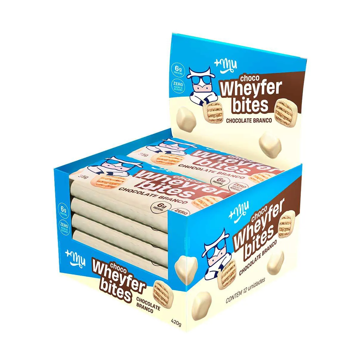 O ChocoWheyfer Bites +MU é um wafer com 6g de proteínas e sem adição de açúcares, ideal para quem busca um lanche prático, gostoso e saudável para o dia a dia.