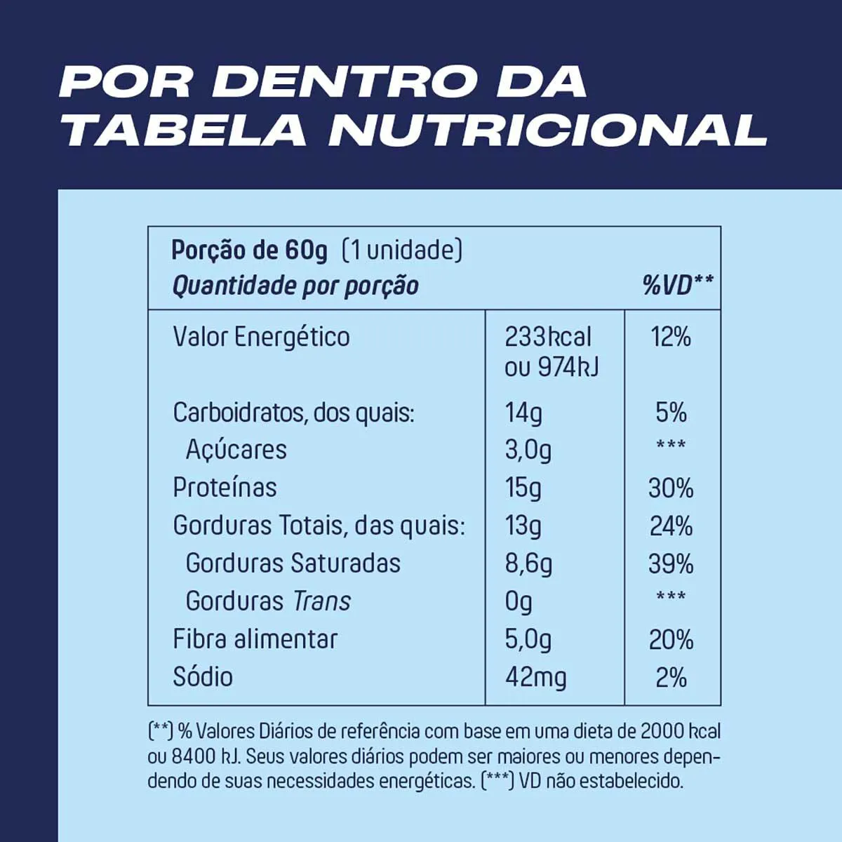 A barrinha Mukebar, possui 15g de proteína, não tem adição de açúcares e nem textura de borracha.