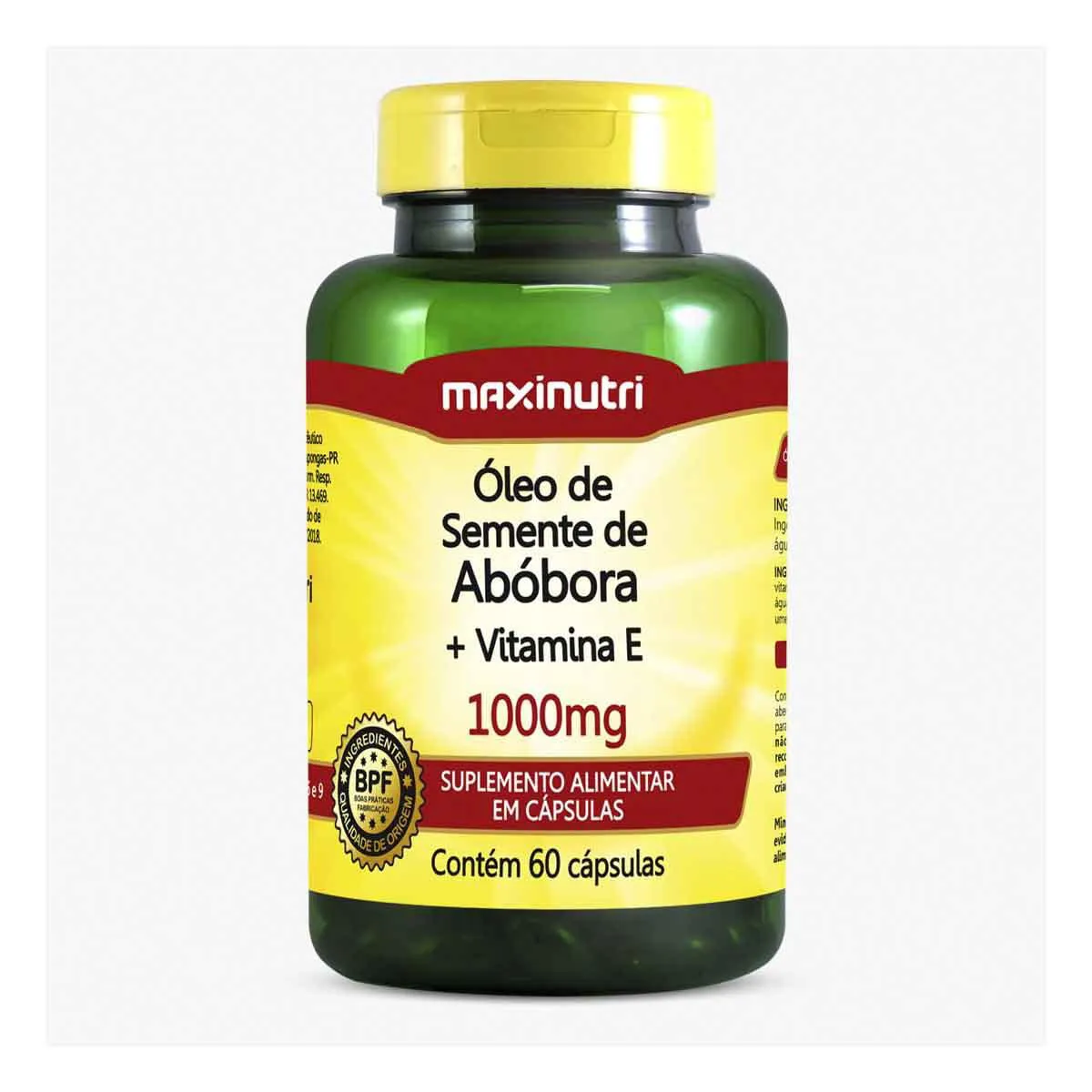 O Óleo de Semente de Abóbora + Vitamina E Maxinutri é um suplemento alimentar em cápsulas, fonte de Ácidos Graxos e um poderoso antioxidante que proporciona efeito anti-inflamatório.