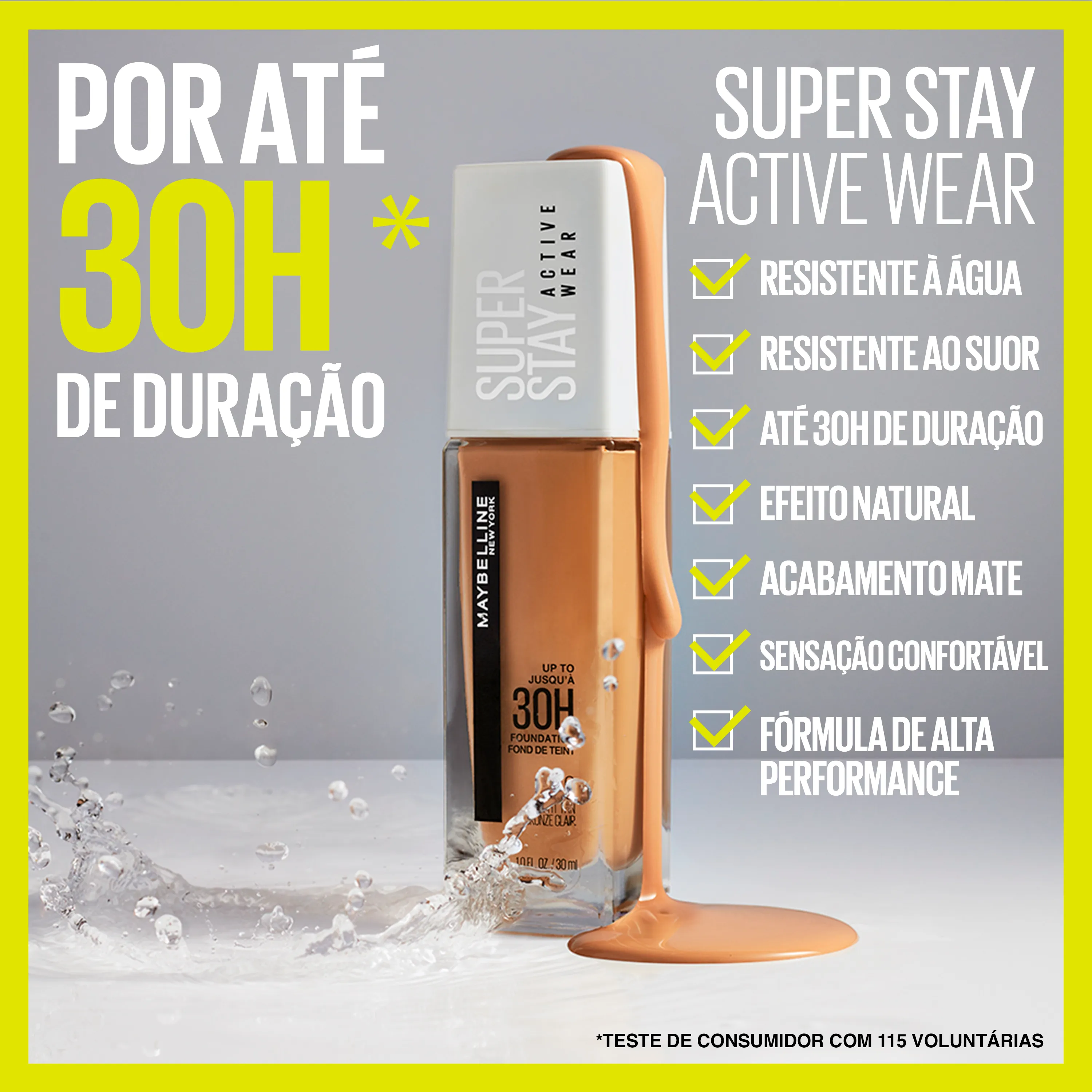 A Maybelline NY SuperStay Active Wear é uma base líquida de longa duração perfeita para te acompanhar na rotina do dia a dia.