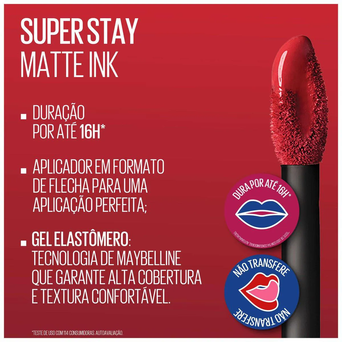 - Dura até 16 horas na boca, sem borrar, transferir ou precisar de retoque.