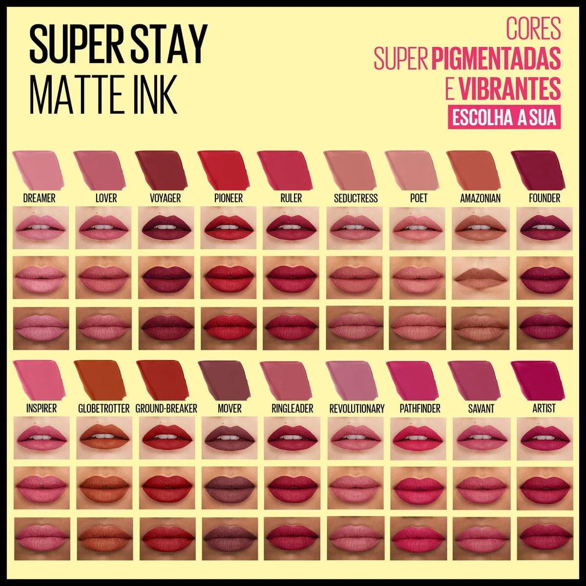 - Cores Matte super pigmentadas e vibrantes