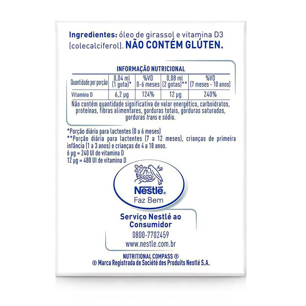 - Suplemento pediátrico de Vitamina D em gotas.