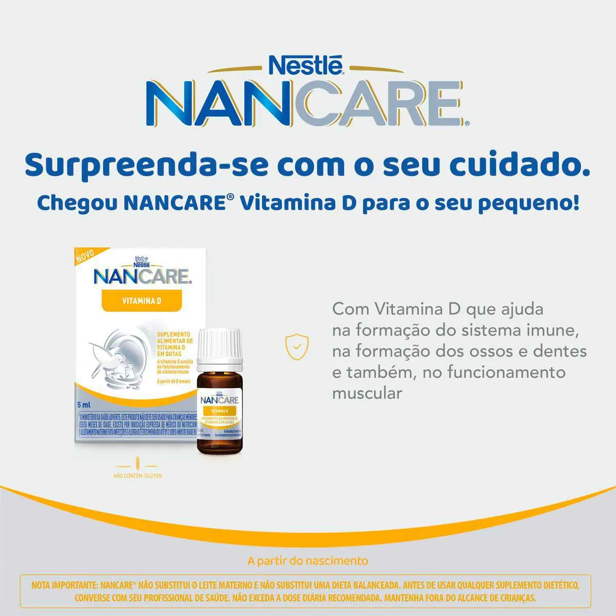 Nancare é um suplemento pediátrico de Vitamina D em gotas.