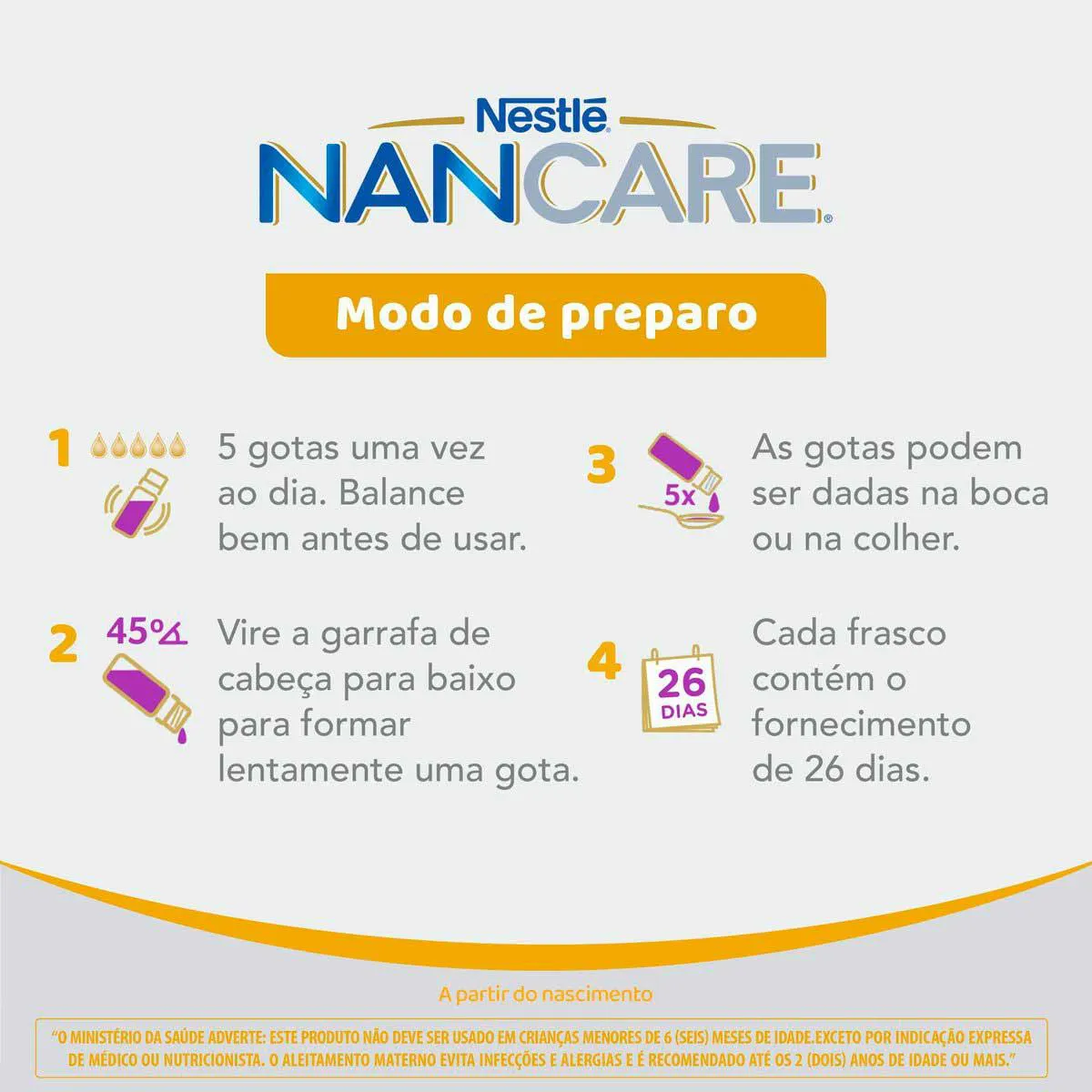 - As gotas podem ser utilizadas misturadas com o leite materno, Fórmula infantil, outra bebida ou com colher.