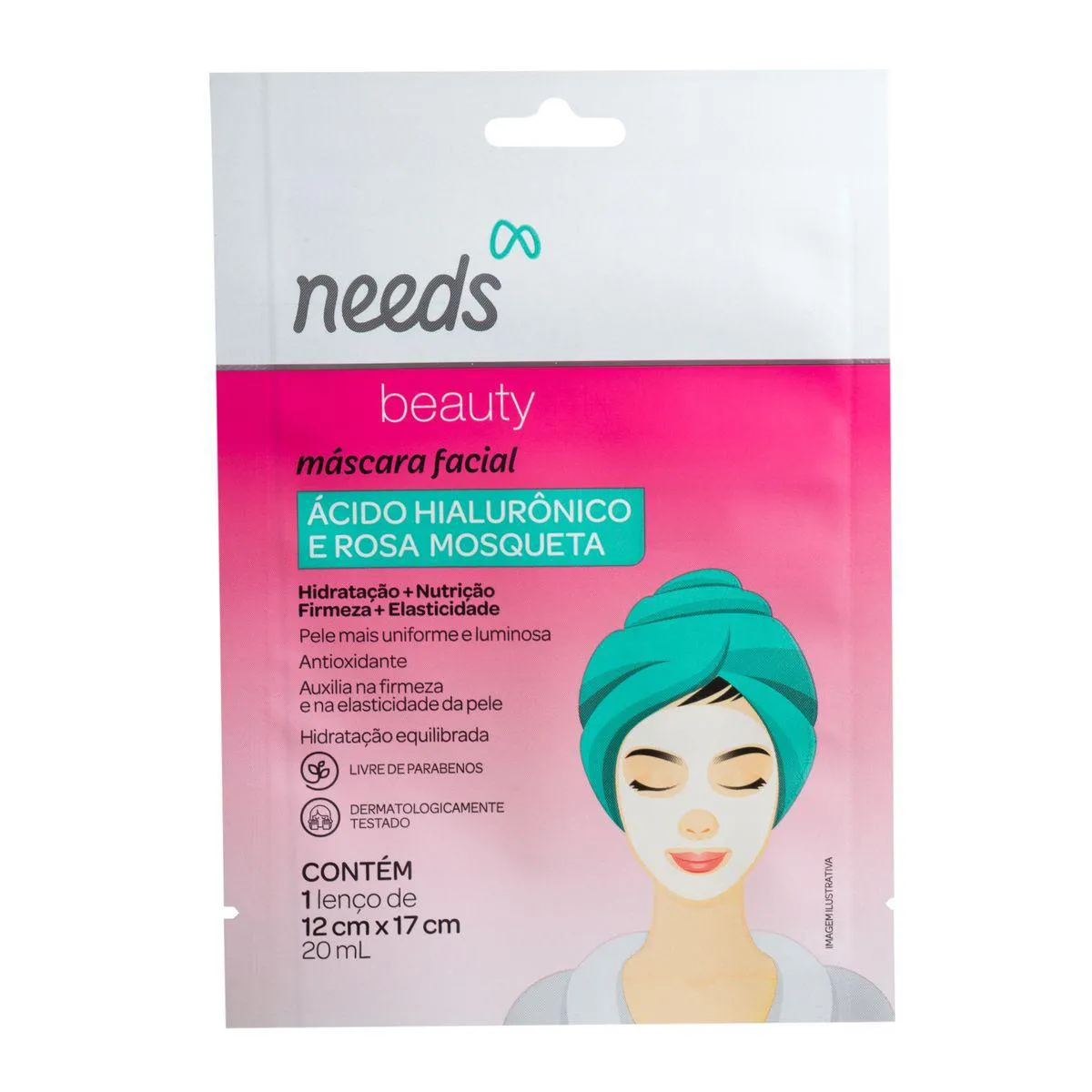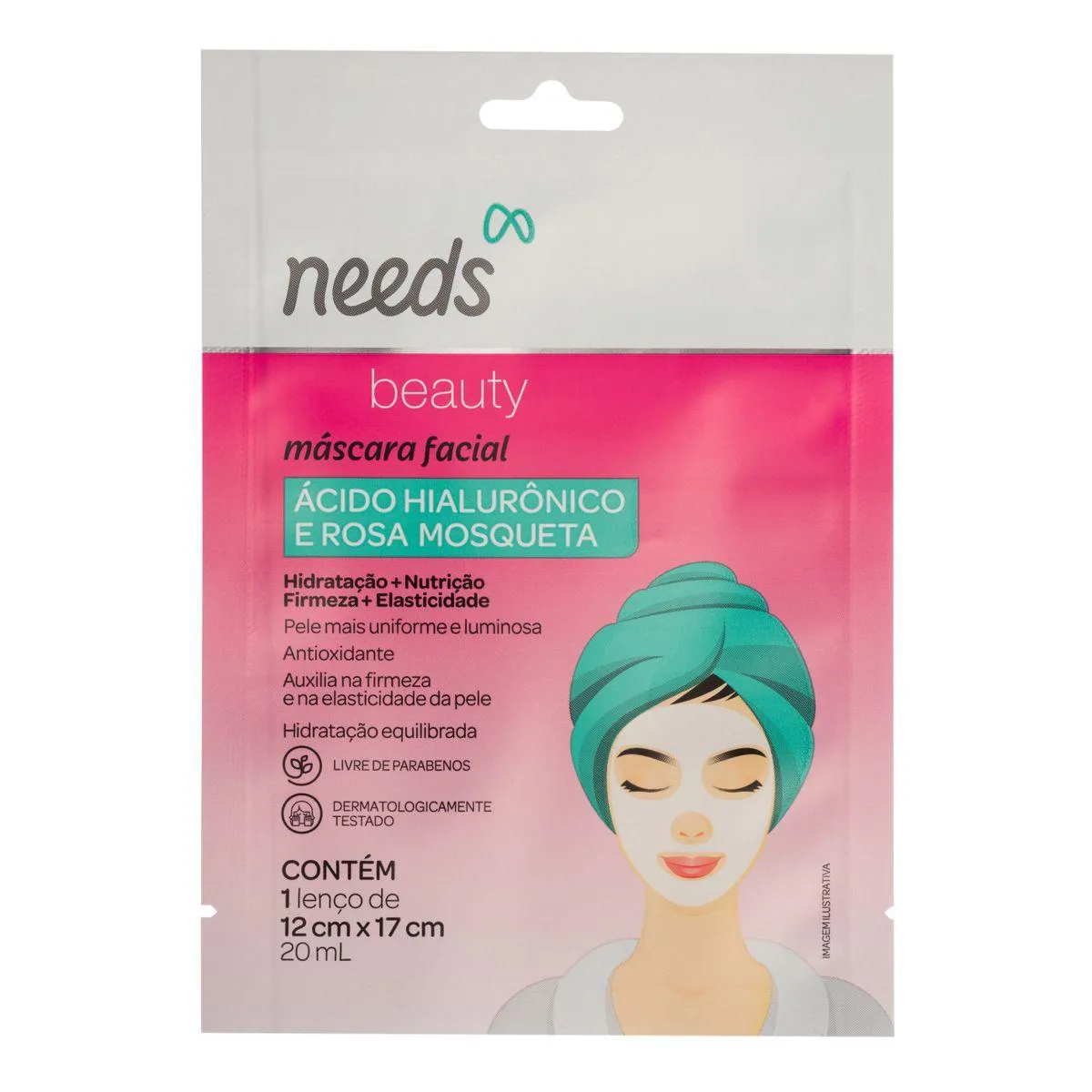 Máscara Facial de Ácido Hialurônico e Rosa Mosqueta Needs Beauty 20ml
