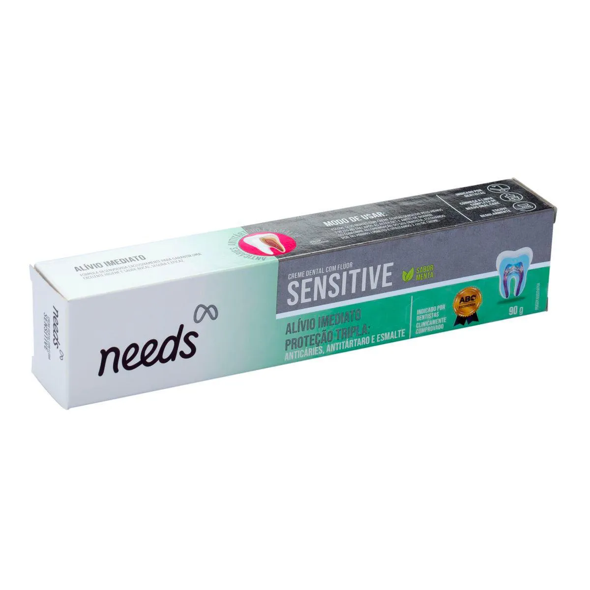 Indicada para proporcionar alívio rápido para dentes sensíveis, a pasta de dente Needs Sensitive previne com segurança os diversos males da saúde bucal. Ela possui ação anticáries, antiplaca e antitártaro, protege o esmalte dental, remove manchas e promove um hálito fresco todos os dias.