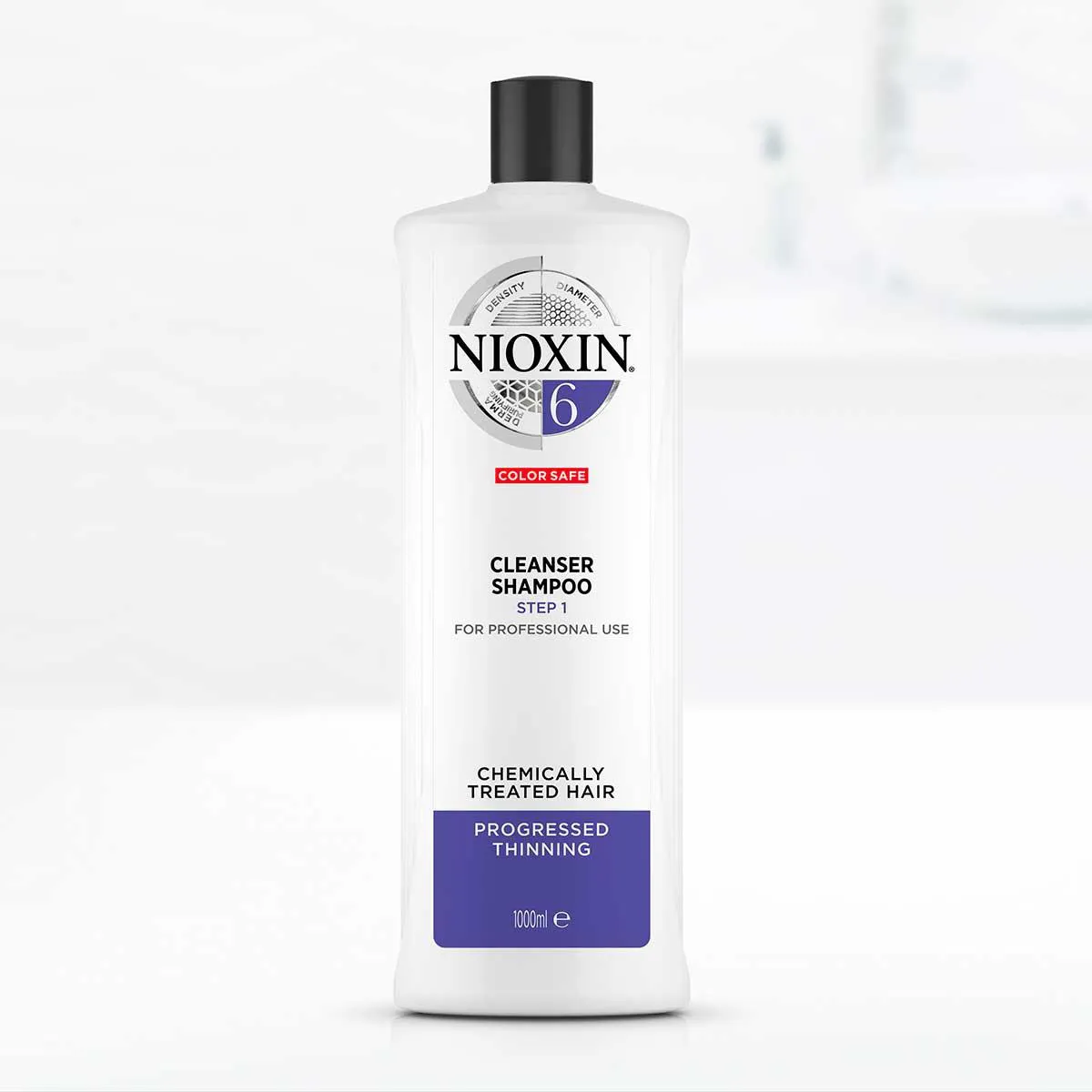 Prepare seu couro cabeludo e seus cabelos com um tratamento completo para obter fios mais densos com Nioxin Sistema de 3 Partes - Cleanser Shampoo para Cabelos Tratados Quimicamente com Rarefação Avançada (Sistema 6).