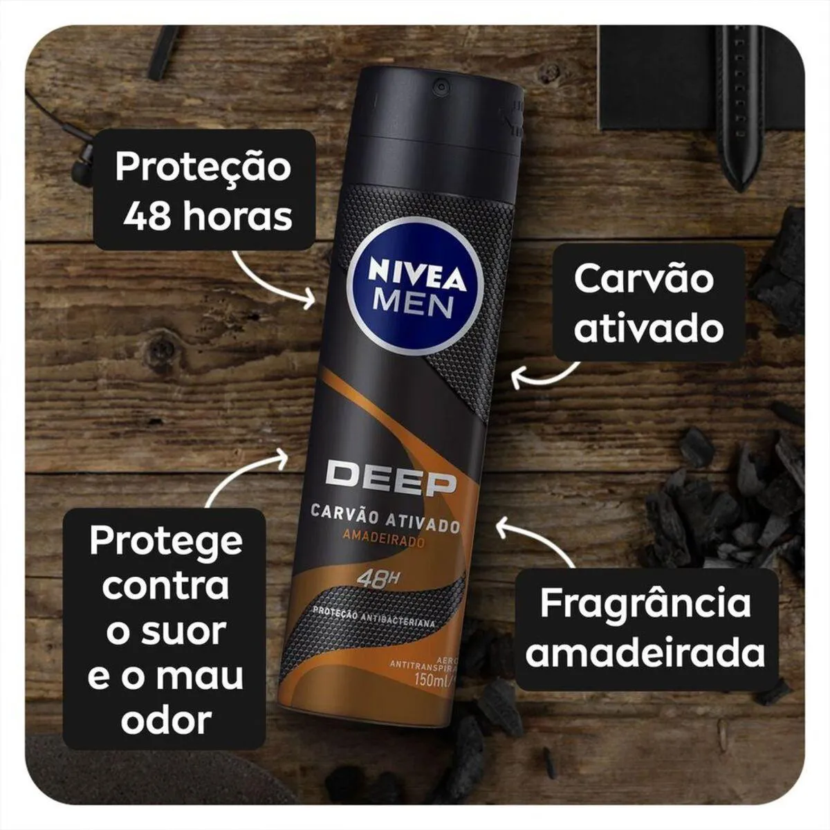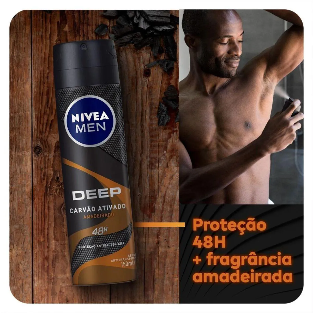 Desodorante Aerosol Nivea Men Carvão Ativado Deep Amadeirado com 150ml