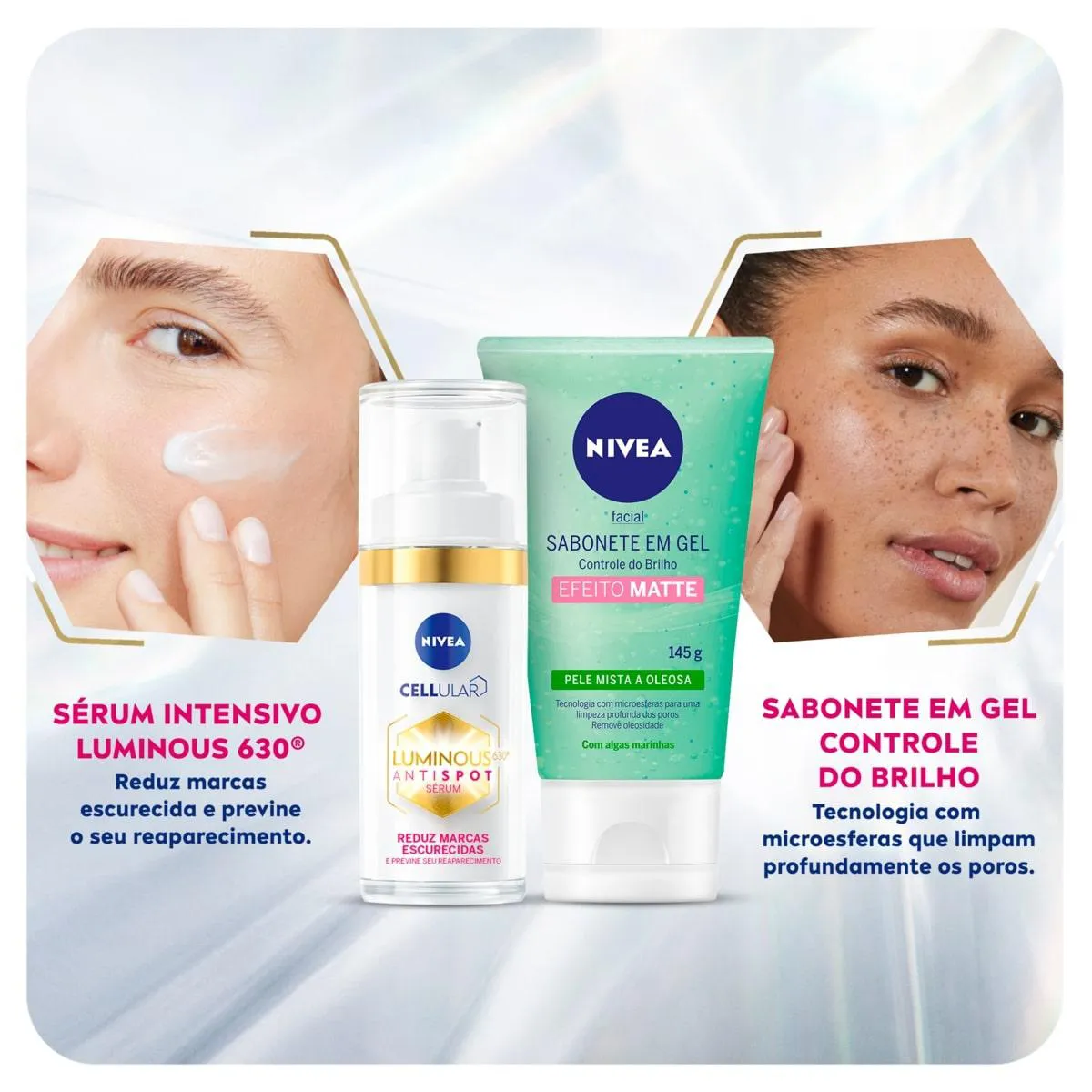 Kit Nivea Luminous 630 Sérum Intensivo 30 ml + Sabonete em Gel Controle do Brilho 145g