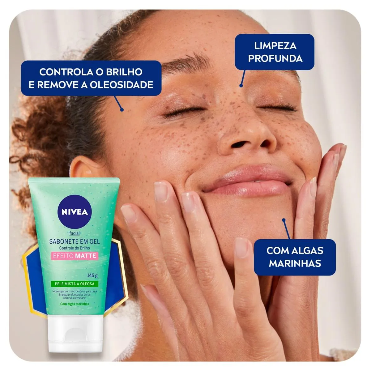 Este sabonete em gel Nivea limpa profundamente a pele e garante uma leve esfoliação que também ajuda a remover o excesso de oleosidade, impurezas e resquícios de maquiagem. Com algas marinhas e Vitamina E em sua fórmula, ele ajuda a manter a hidratação natural e revitaliza a pele.