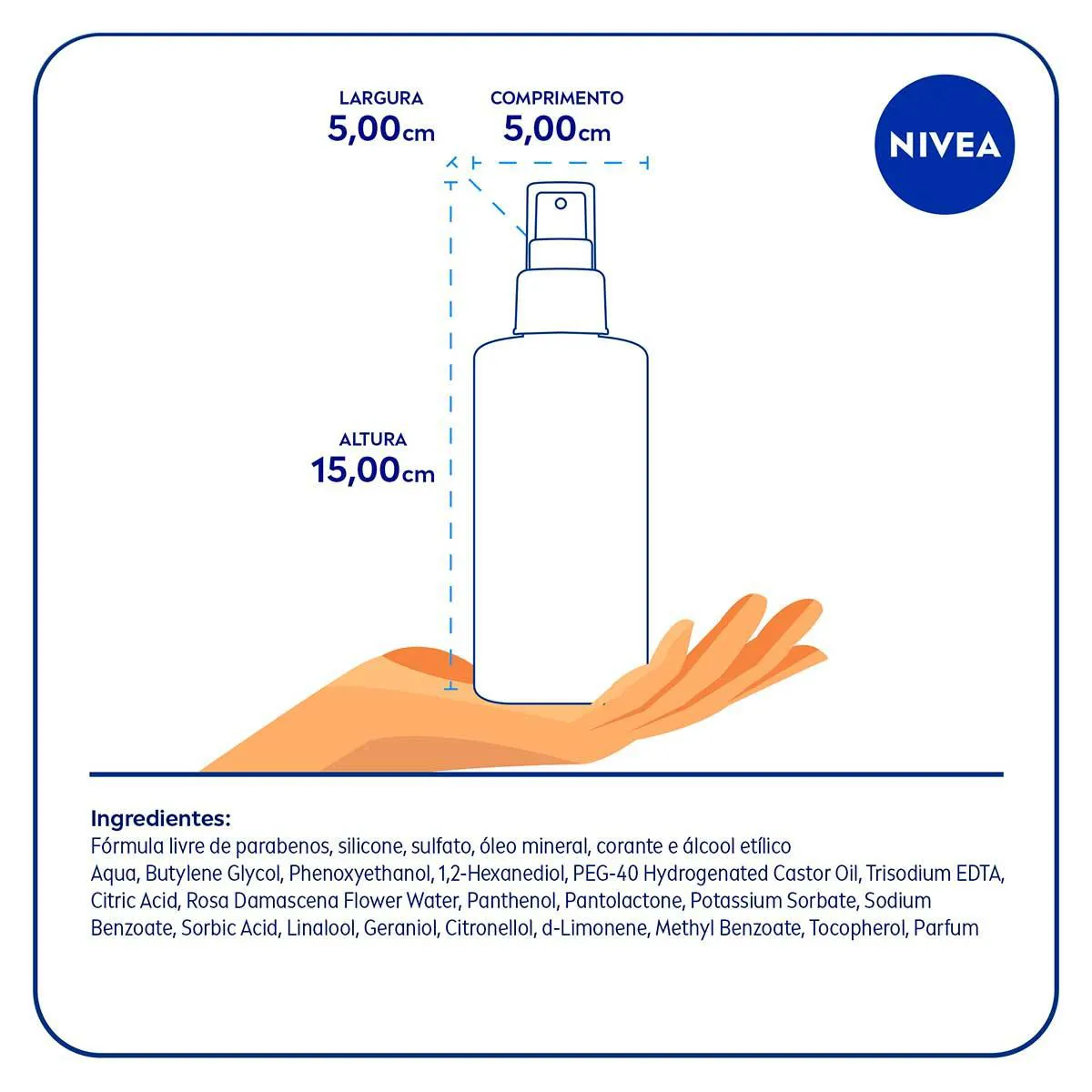 Nivea Mist Aqua Rose é um hidratante facial em formato spray com ação refrescante. Ele pode ser usado antes e depois da maquiagem como primer e fixador e também pode ser reaplicado durante o dia a qualquer momento. Com absorção rápida, evitando aparência oleosa, ele garante uma pele fresca e hidratada por mais tempo durante o dia e está disponível em embalagem com 150ml.