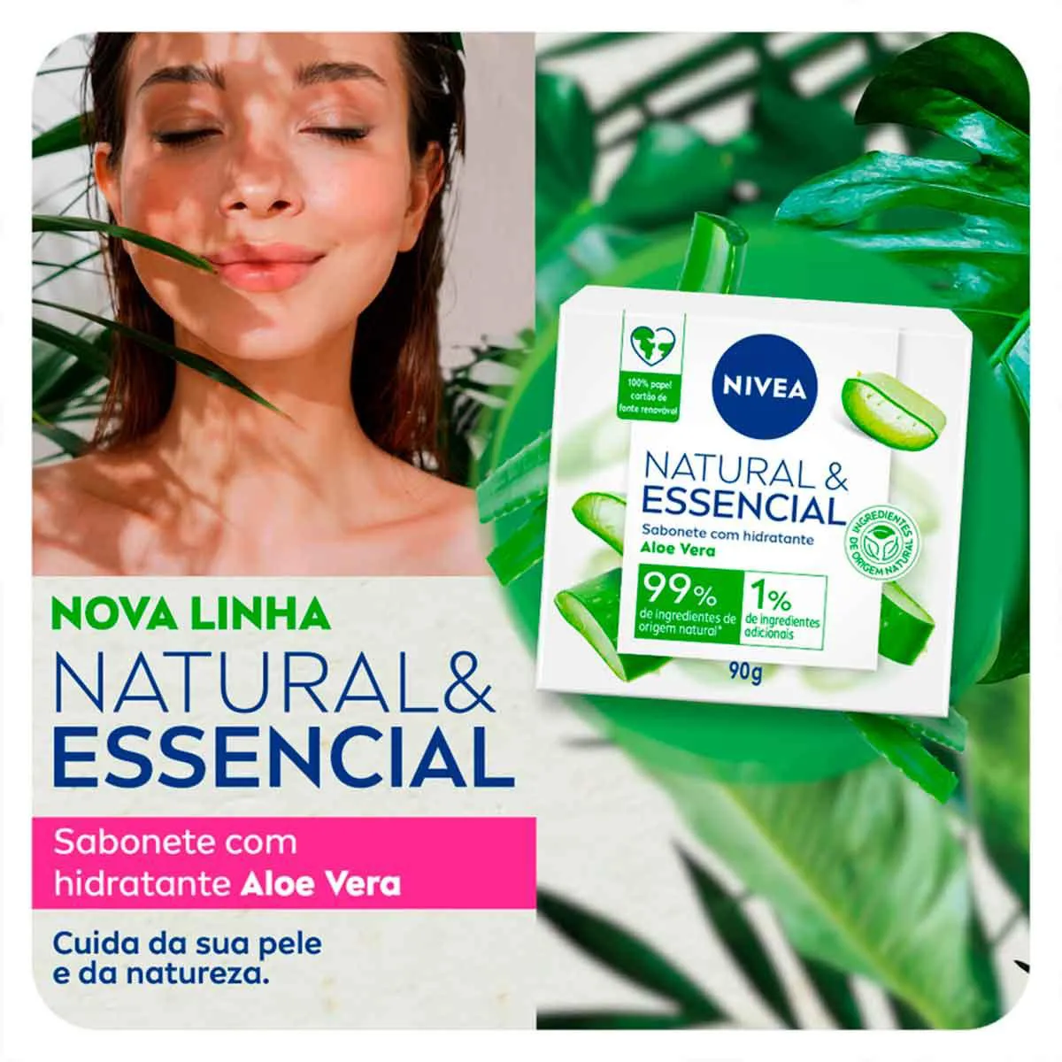 A Natural & Essencial é uma nova linha exclusiva da Nivea, que conta com sabonetes vegetais de fórmula vegana, 99% de ingredientes naturais e embalagem feita com papel cartão de fonte 100% renovável.