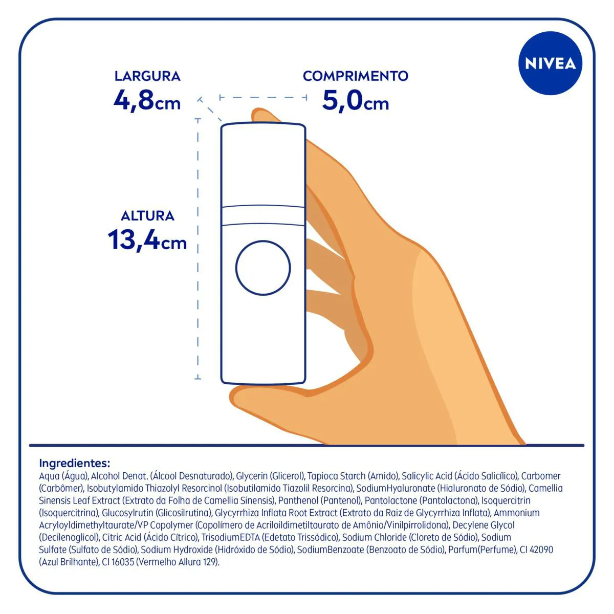 Com efeito matte instantâneo e duradouro, o sérum Nivea possui fórmula com cor média, garante proteção por dentro e por fora, não obstrui os poros e também previne o envelhecimento da pele. Este é um produto dermatologicamente e oftalmologicamente testado para sua segurança.