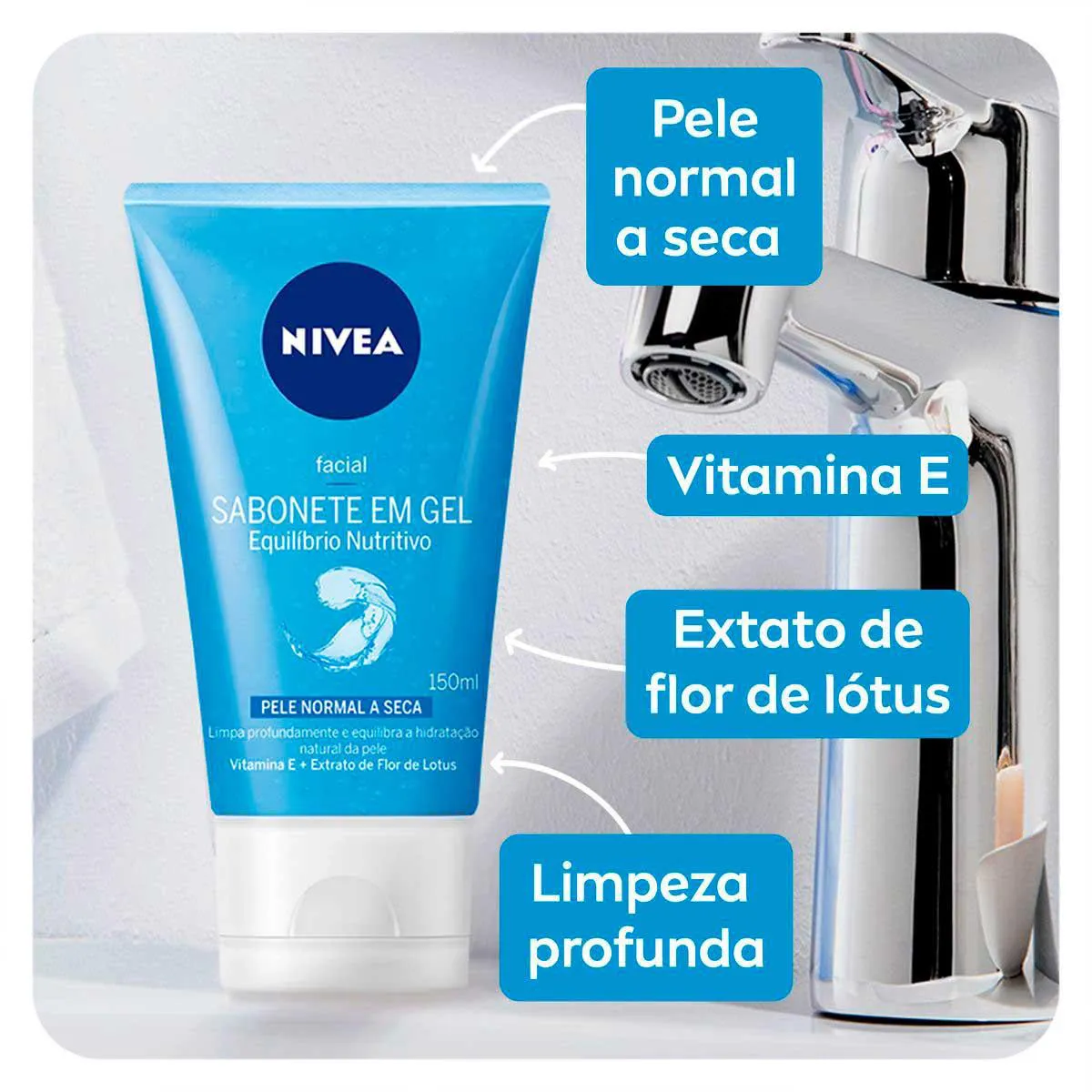 Indicado para pele normal a seca, para limpar diariamente o Rosto e proteger a hidratação natural da pele. Higieniza profundamente sem produzir espuma, sendo capaz de remover resíduos de maquiagem e da poluição externa. Gel Nivea Equilíbrio Protetor é a opção ideal para sentir a sua pele bem cuidada, limpa e refrescante, todos os dias.