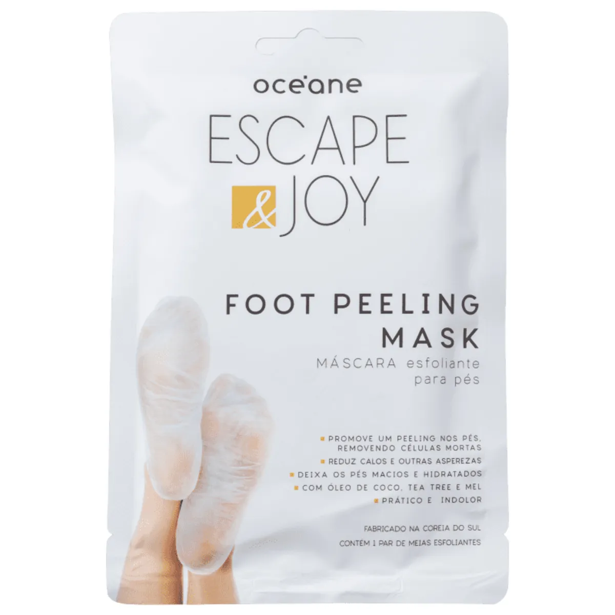 Ideal para hidratar profundamente e suavizar a pele da região dos pés, a máscara Océane Escape & Joy remove as células mortas, minimiza calosidades e asperezas em geral, auxiliando no tratamento para pés ressecados, rachados ou cascudos. Com efeito peeling, ela renova instantaneamente a pele, proporcionando toque sedoso e sensação imediata de conforto.
