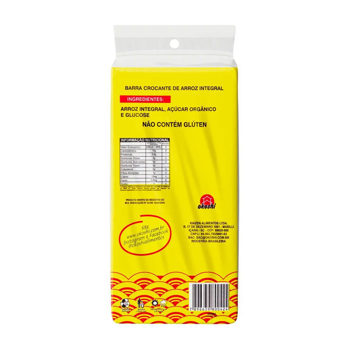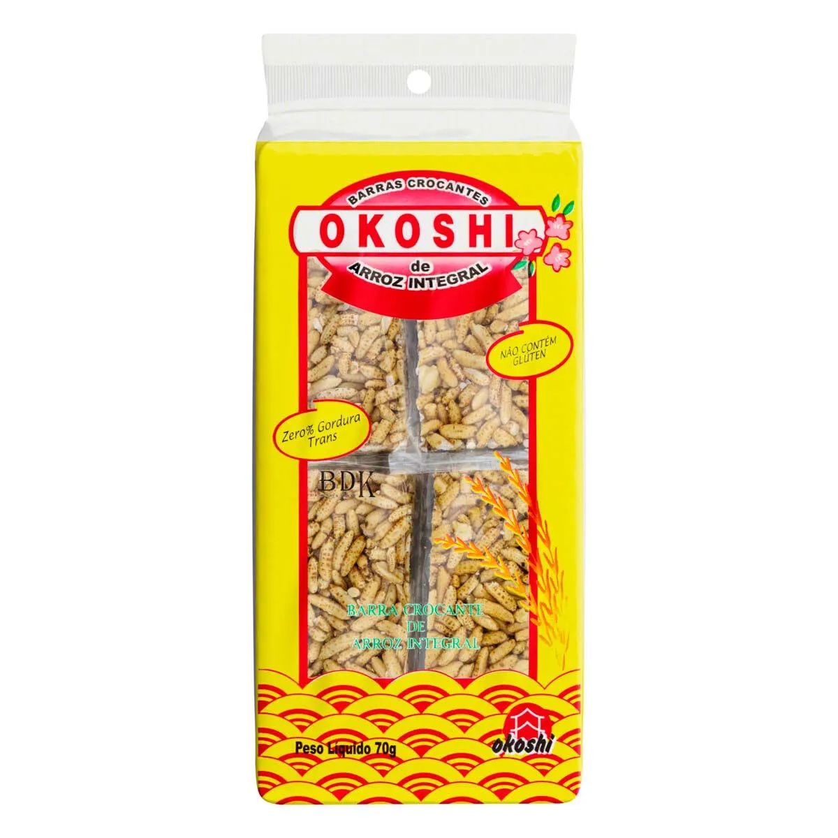 A Barra de Arroz Integral Okoshi Caramelizadas Açúcar Orgânico é embalado individualmente. Auxilia no funcionamento do intestino; É bom para o coração e para o cérebro; Auxilia em dietas e no emagrecimento.