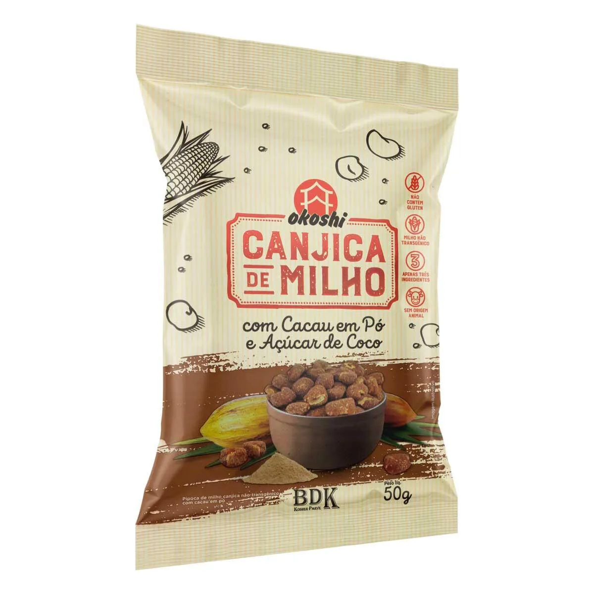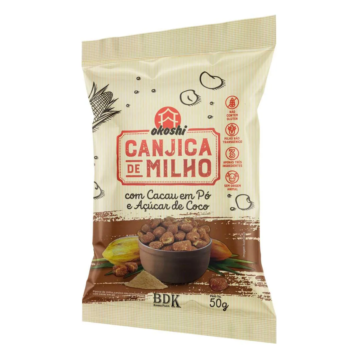Canjica de Milho Okoshi Cacau em Pó e Açúcar de Coco 50g
