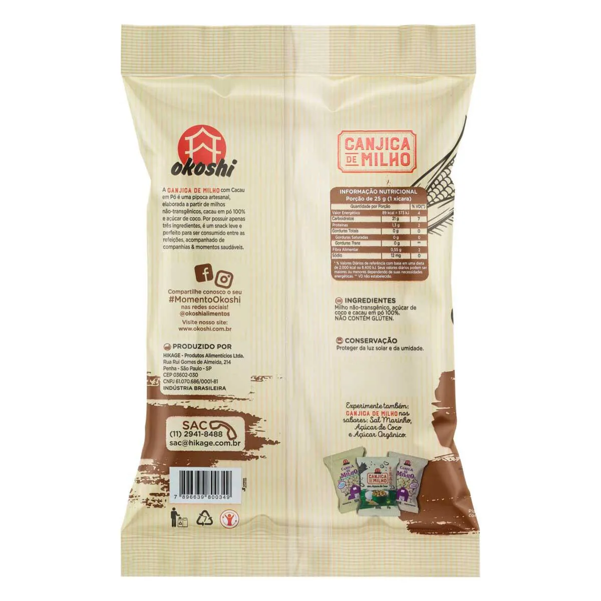 Com receita leve e 100% natural, as pipocas canjica de milho da Okoshi são produzidas a partir de milhos não-transgênicos de alta qualidade, sendo uma escolha mais saudável para deixar o seu dia mais saboroso. Disponível em opções doces (açúcar orgânico, açúcar de coco e cacau em pó) e salgada. Experimente!