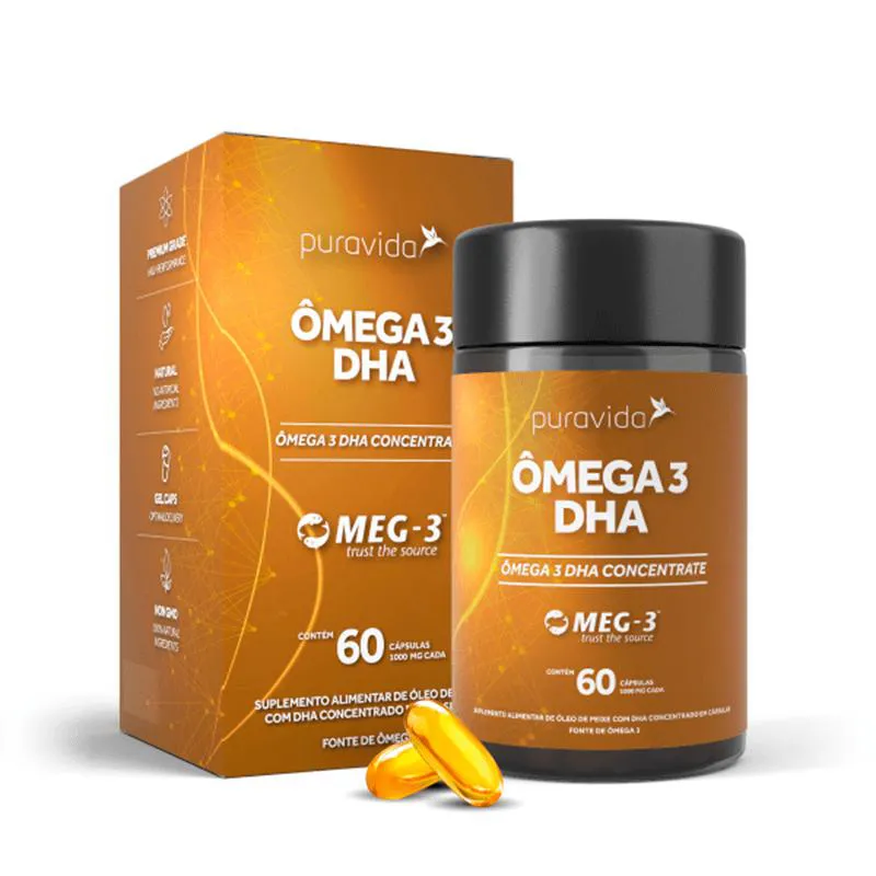 O Ômega 3 DHA da Pura Vida, foi desenvolvido com cuidado para ser um suplemento rico, puro e com alta concentração de DHA. É obtido através da pesca sustentável e ecológica da costa despoluída do leste do Canadá, cada porção fornece 1000mg de DHA e 400mg de EPA.