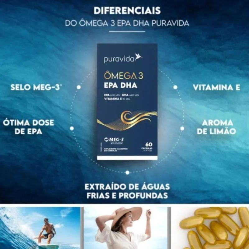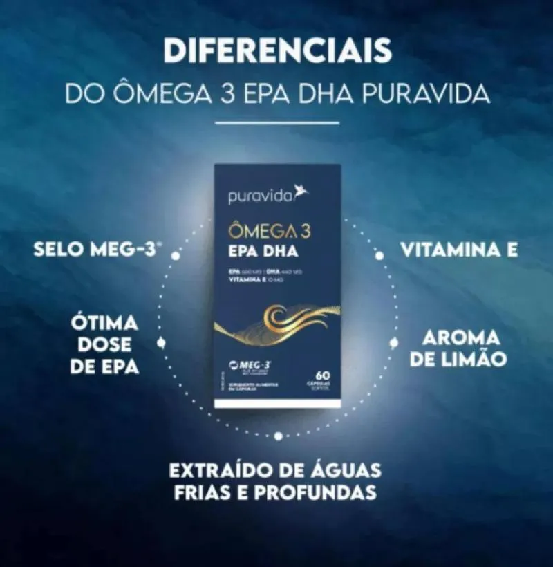 O Ômega 3 EPA DHA Puravida é elaborado com óleo de peixe capaz de contribuir na manutenção de funções importantes do organismo em todas as fases da vida adulta. Formulado com tecnologia avançada e matéria-prima de procedência rastreável, possui selo de qualidade MEG-3® que reconhece o fornecimento sustentável de ômega 3 e a ausência de metais pesados, potenciais neurotóxicos e outras impurezas em sua composição.