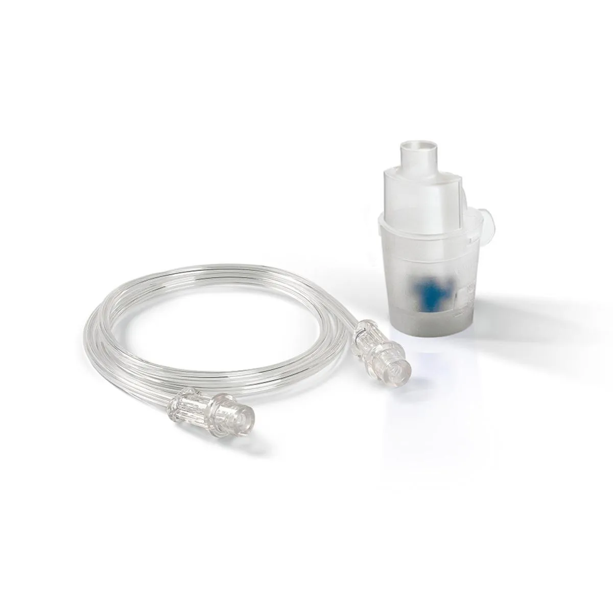 O kit nebulizador é indicado para uso no inalador compressor Omron NE-C803. Ele inclui tudo de ar, kit inalador e bucal, que facilitam a inalação do medicamento em formato aerossol.