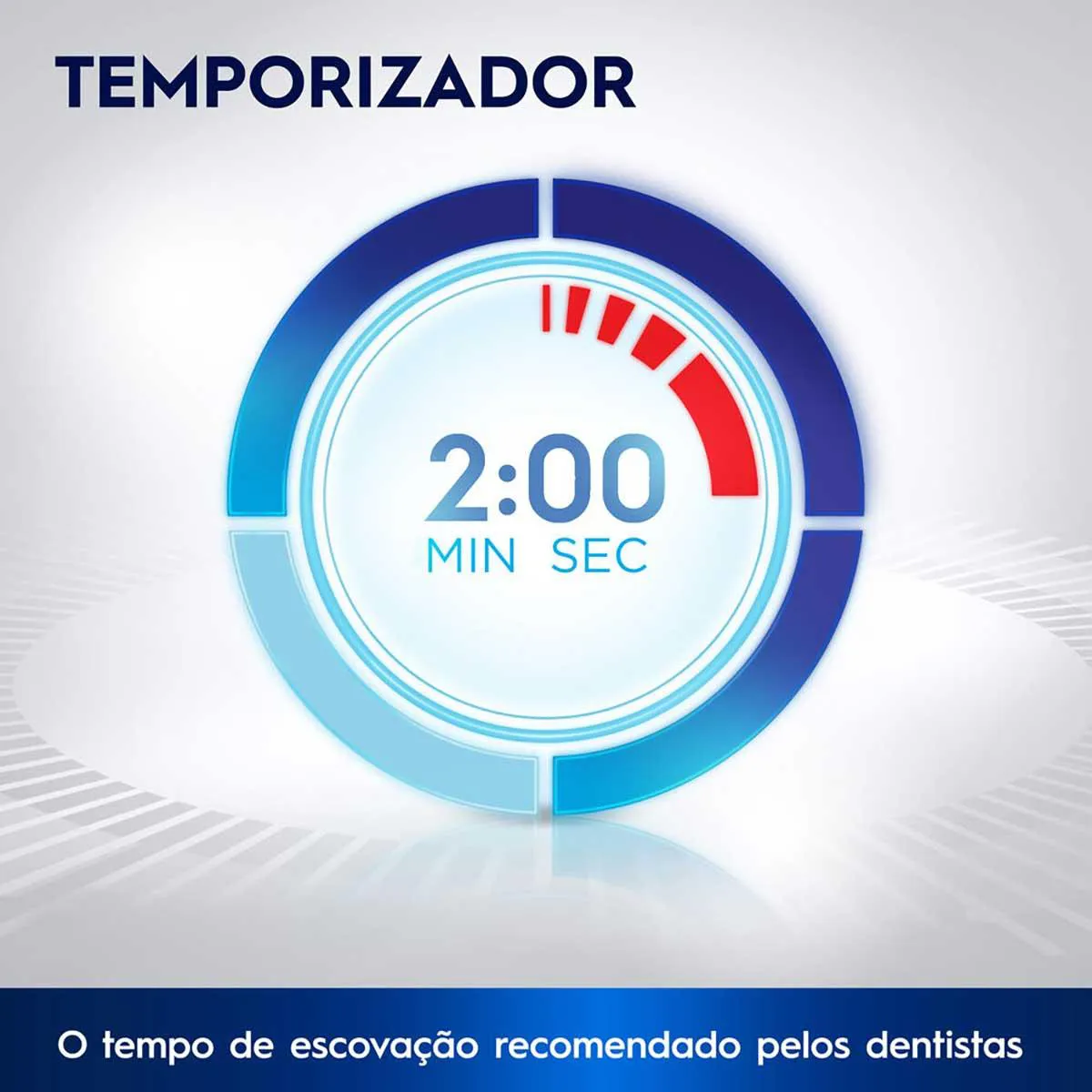 - Possui timer de 2 minutos, para ajudar no tempo ideal de escovação.