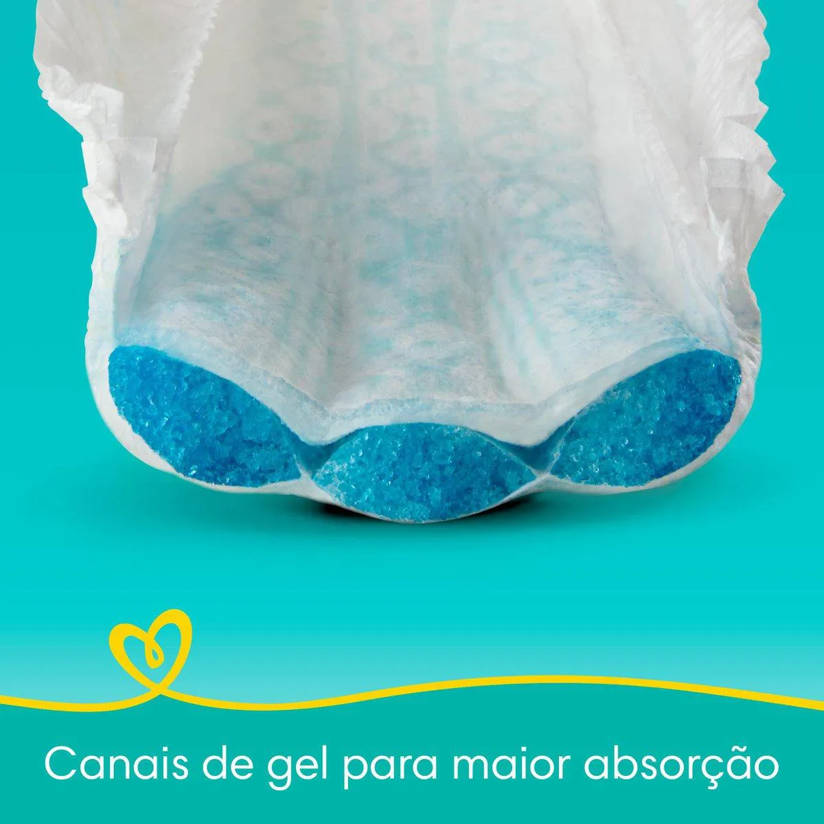 - Com 3 canais de gel absorventes extras, que distribuem o xixi e ajudam a evitar que a fralda fique caída.